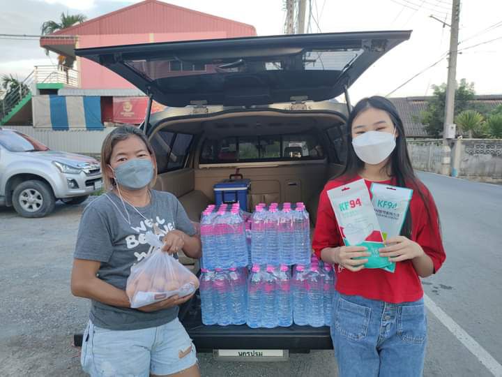 แจกอาหารแห้ง เช่น ไข่ไก่ 1 แผง แม้ 2 ห่อ 20 อัน น้ำดื่ม 5 แพ็ค ไม่อยากให้ผู้คนรู้สึกถูกทอดทิ้ง อยากให้ชาวอำเภอนครชัยศรี จังหวัดนครปฐม ให้ปลอดภัยนายสถานการณ์ โควิด 19