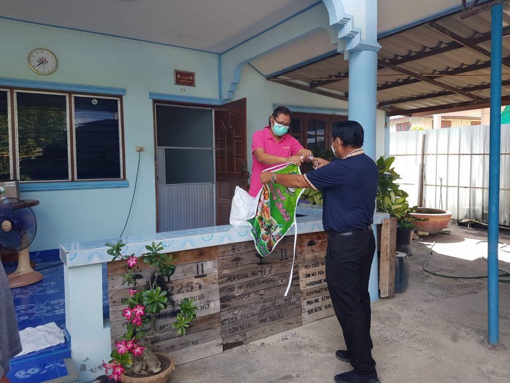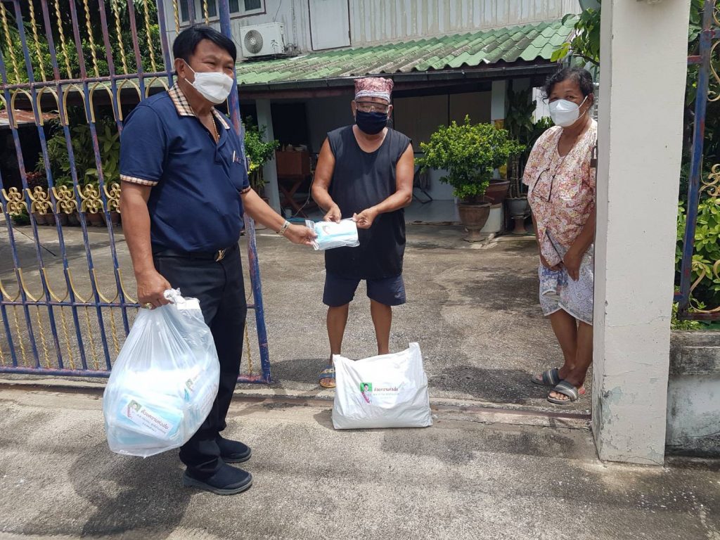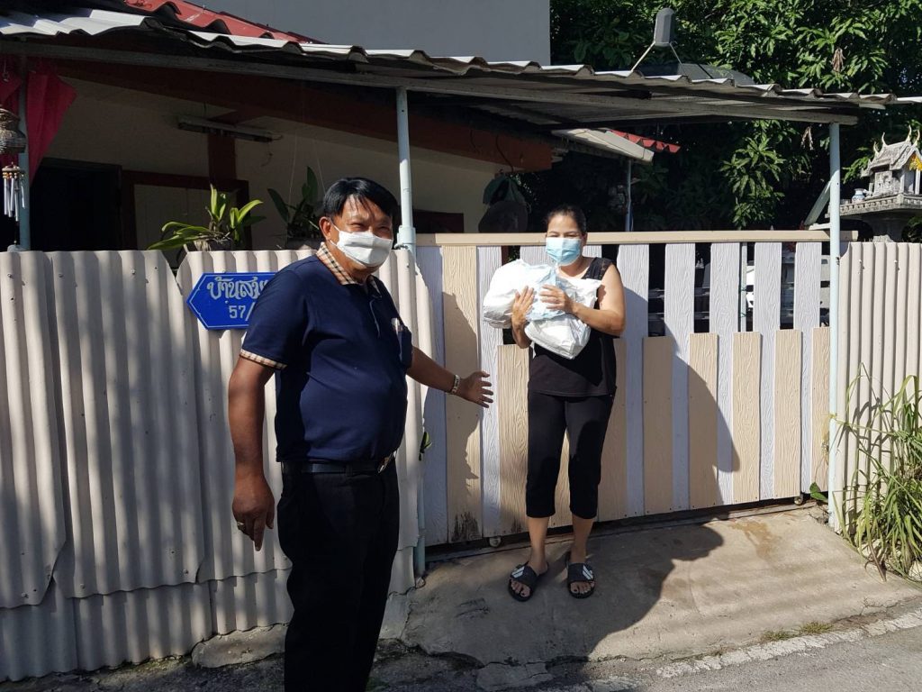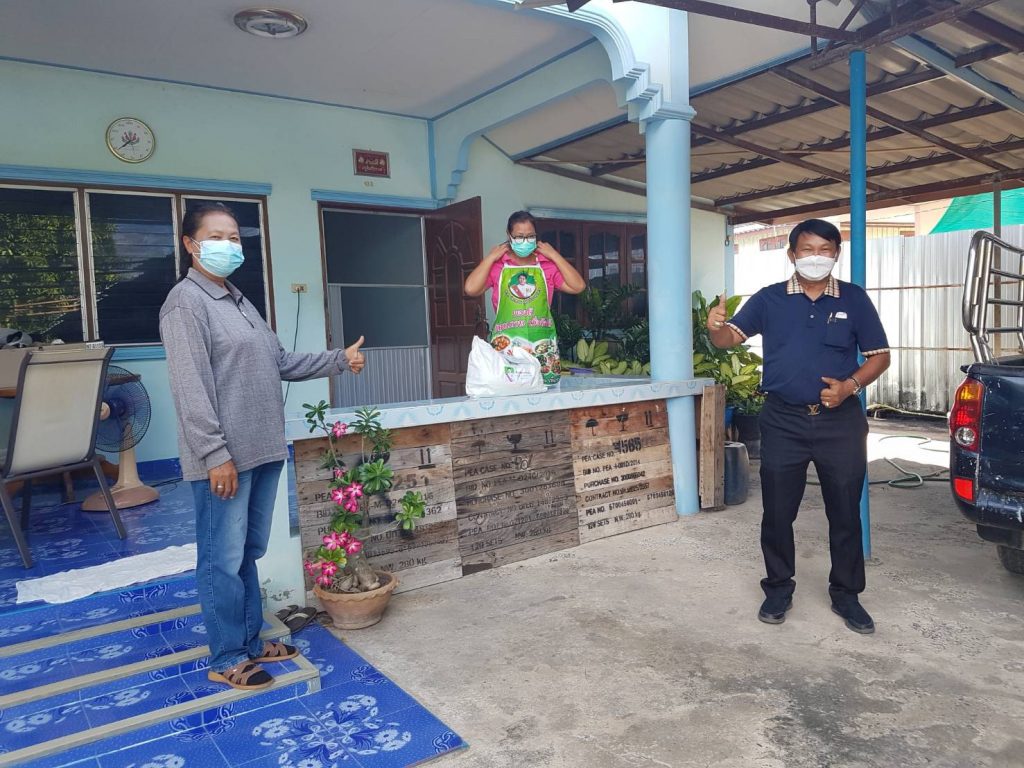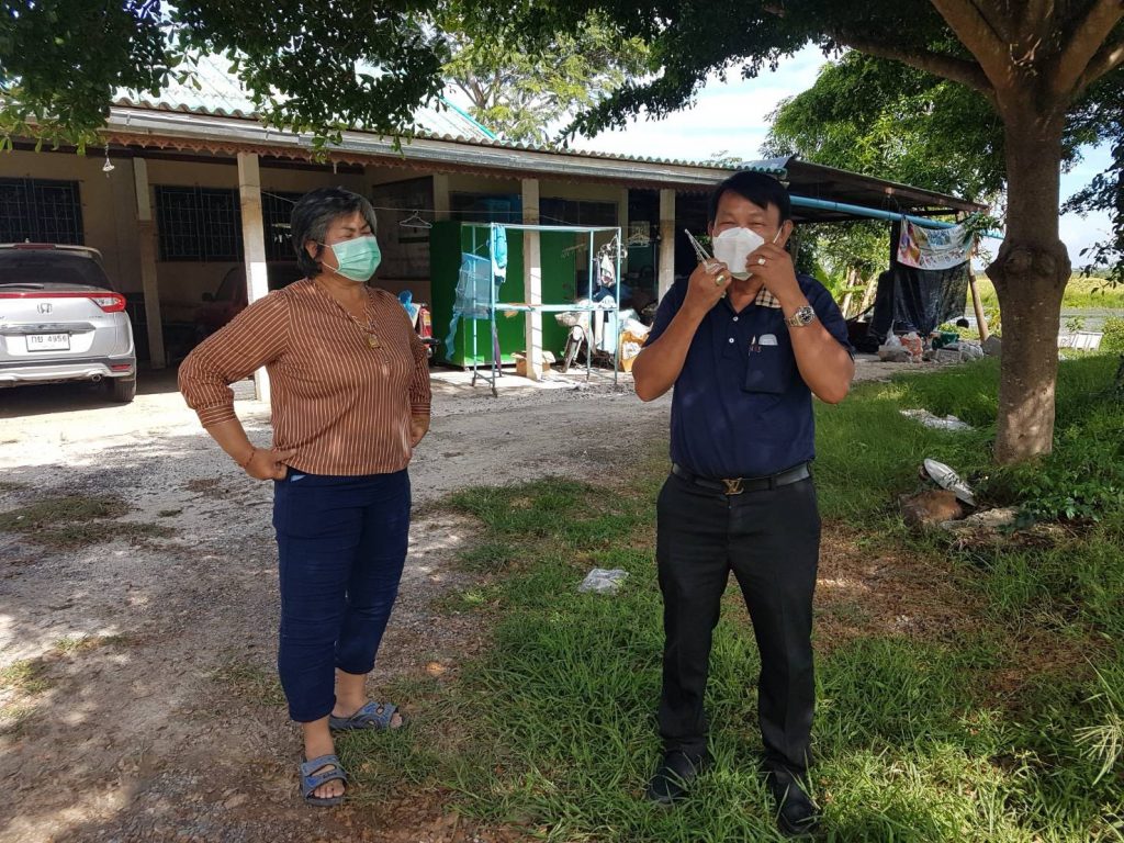 จึงได้ลงพื้นที่ เพื่อเยี่ยม ให้กำลังใจ มอบถุงยังชีพ แอลกอฮอล์ หน้ากากอานามัย ให้กับ ผู้ป่วยติดเชื้อโควิท 19 และผู้ที่อยู่ใกล้ชิด ที่ จำเป็น จะต้องกักตัว รอดูอาการ อยู่ที่บ้าน เพื่อไม่ให้เชื้อโรค แพร่ ระบาด