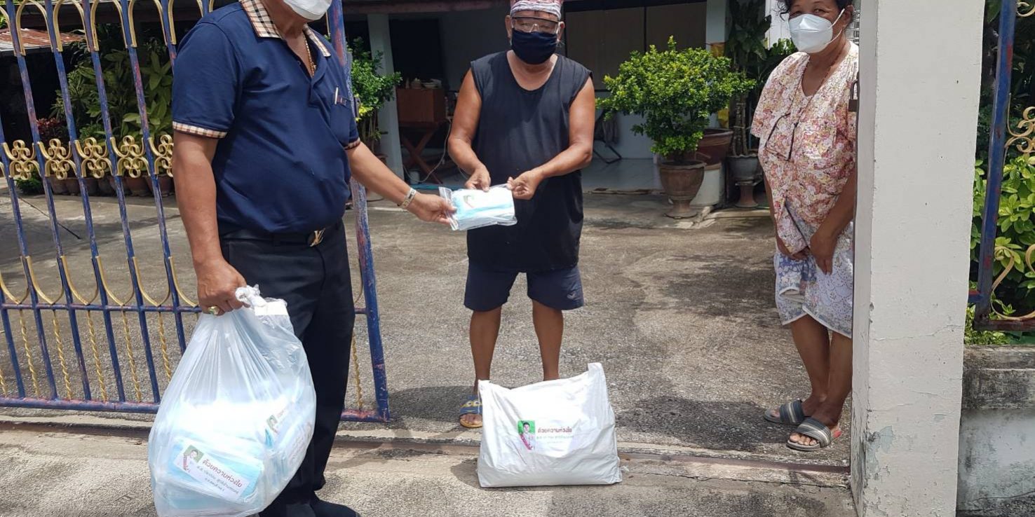 ในถุงยังชีพ มีสิ่งของดังนี้ รวมทั้งเงินบริจาค นำมามอบให้ผู้ป่วยติดเตียงถึงบ้าน เนื่องจากไม่สามารถเดินทางไปไหนได้ โดยถุงยังชีพ ประกอบด้วย ข้าวสาร อาหารแห้ง และยาเวชภัณฑ์ อาทิ ฟ้าทะลายโจร เจลแอลกอฮอล์ และหน้ากากอนามัย ซึ่งเป็นสิ่งของที่จำเป็นและหายากในช่วงเวลานี้”