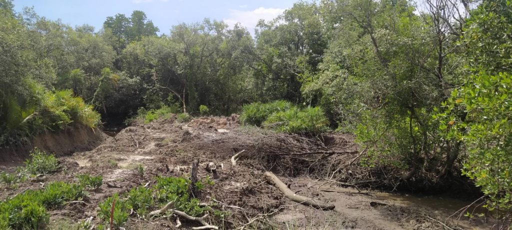 กอ.รมน.จังหวัดสตูล ร่วมกับ ชุดปฏิบัติการพิเศษป้องกันและปราบปรามการบุกรุกทำลายทรัพยากรป่าชายฝั่งและป่าชายเลน, ศูนย์อนุรักษ์ทรัพยากรป่าชายเลน จ.สตูล, ศูนย์อนุรักษ์ทรัพยากรป่าชายเลนที่ 24-27, กก.6 บก.ป.การกระทำผิดเกี่ยวกับทรัพยากรธรรมชาติและสิ่งแวดล้อม, อ.ทุ่งหว้า จ.สตูล, สภ.ทุ่งหว้า, หน่วยป้องกันและรักษาป่าที่ สต.2 (ทุ่งหว้า) และ กำนัน ต.ขอนคลาน อ.ทุ่งหว้า ตลอดจน ผญบ.หมู่ 1 ต.ขอนคลาน อ.ทุ่งหว้า จ.สตูล สนธิกำลังเพื่อดำเนินการตรวจสอบพื้นที่ป่าชายเลนในพื้นที่แปลงเป้าหมายคามแผนปฏิบัติการ “เพิ่มและฟื้นฟูพื้นที่ป่าชายเลน” (ทวงคืนผืนป่าชายเลน) เนื้อที่ จำนวน 92-3-56 ไร่ บริเวณทุ่งพยอม หมู่ 1 ต.ขอนคลาน อ.ทุ่งหว้า จ.สตูล ในเขตป่าสงวนแห่งชาติ ป่าเลน จ.สตูล ผลการดำเนินการตรวจสอบ พบว่า ที่ดินแปลงดังกล่าว มีร่องรอยการขุดคูยกคันดินล้อมรอบพื้นที่ป่าชายเลน พื้นที่ป่าถูกแผ้วถาง และทำประโยชน์เป็นบ่อเลี้ยงสัตว์น้ำ ไม่พบตัวผู้กระทำความผิด โดยในการนี้ คณะเจ้าหน้าที่พิจารณาแล้วเห็นว่า การเข้าครอบครองและทำประโยชน์ในที่ดิน โดยมิได้มีหนังสือแสดงสิทธิในที่ดิน เป็นการบุกรุกยึดถือครอบครองและทำประโยชน์ในพื้นที่ป่าสงวน จึงได้ดำเนินการตรวจยึดพื้นที่ป่าดังกล่าว ในฐานความผิด การยึดถือ ครอบครอง ทำประโยชน์หรืออยู่อาศัยในที่ดิน ก่อสร้าง แผ้วถาง เผาป่า หรือกระทำด้วยประการใดๆ อันเป็นการเสื่อมเสียแก่สภาพป่าสงวนแห่งชาติ ตาม พรบ.ป่าสงวนแห่งชาติ พ.ศ.2507 มาตรา 25 และ มาตรา 31 และ พรบ.ป่าสงวนแห่งชาติ (ฉบับที่ 4) พ.ศ.2549 มาตรา 26/4,26/5 มาตรา 31 และการกระทำหรือละเว้นการกระทำด้วยประการใด โดยมิชอบด้วยกฏหมายอันเป็นการทำลายหรือทำให้สูญหายหรือเสียหายแก่ทรัพยากรธรรมชาติซึ่งเป็นของรัฐ หรือเป็นสาธารณสมบัติของแผ่นดิน อันเป็นความผิดตาม พรบ.ส่งเสริมและรักษาคุณภาพสิ่งแวดล้อมแห่งชาติ พ.ศ.2535 มาตรา 97 จึงได้มอบเรื่องราวให้ นายนิพนธ์ เต็มแก้ว ผอ.ศูนย์อนุรักษ์ทรัพยากรป่าชายเลนที่ 26 (ทุ่งหว้า สตูล) รับเรื่องไปร้องทุกข์กล่าวโทษต่อ พนักงานสอบสวน สภ.ทุ่งหว้า เพื่อดำเนินคดีตามกฏหมายต่อไป