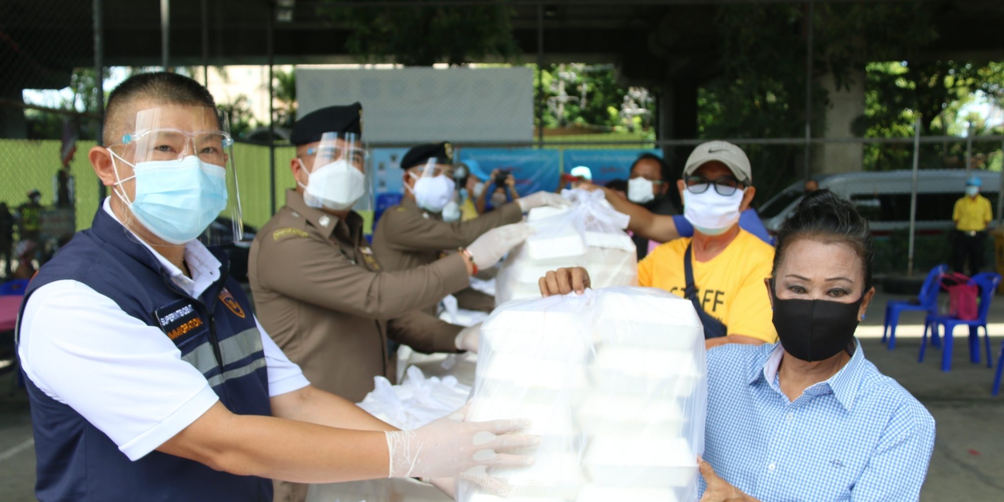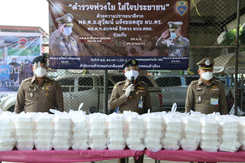 โดยในวันนี้ วันที่ 19 ส.ค.64 เวลา 11.00 น.พล.ต.ท.สมพงษ์ ชิงดวง ผบช.สตม. พร้อมด้วย พล.ต.ต.อาชยน ไกรทอง รอง ผบช.สตม.,พล.ต.ต.พันธนะ นุชนารถ ผบก.สส.สตม.,พ.ต.อ.ณภัทรพงศ์ สุภาพร ผกก.ปอพ.บก.สส.สตม. ร่วมกับ สน.ยานนาวา โดย พ.ต.อ.ธนโชติ ฤกษ์ดี ผกก.สน.ยานนาวา และ ดร.ธำรงศักดิ์ ดำรงศิริ ประธาน กต.ตร. สน.ยานนาวา มอบอาหารกล่อง,น้ำดื่ม และผลไม้ จำนวน 850 ชุด