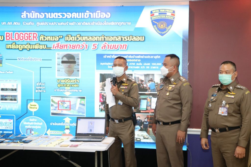 ตม.2,พ.ต.อ.ภัคพงศ์ สายอุบล รอง ผบก.ตม.1,พ.ต.อ.ชย พานะกิจ ผกก.(สอบสวน) กลุ่มงานสอบสวน บก.สส.สตม. และเจ้าหน้าที่ตำรวจ บก.สส.สตม. ร่วมกับเจ้าหน้าที่ ศปชก.สตม. ร่วมแถลงข่าวผลการจับกุมคนร้าย คือนายนิรันดร์ฯ อายุ 49 ปี สัญชาติไทย ในข้อหา “มีไว้เพื่อนำออกใช้ซึ่งบัตรอิเล็กทรอนิกส์ของผู้อื่นโดยมิชอบในประการที่น่าจะก่อให้เกิดความเสียหายแก่ผู้อื่นหรือประชาชน,นำเข้าสู่ระบบคอมพิวเตอร์ซึ่งข้อมูลคอมพิวเตอร์ที่บิดเบือน หรือปลอมไม่ว่าทั้งหมดหรือบางส่วน หรือข้อมูลคอมพิวเตอร์อันเป็นเท็จ โดยประการที่น่าจะเกิดความเสียหายแก่ประชาชน และฉ้อโกงประชาชน”
