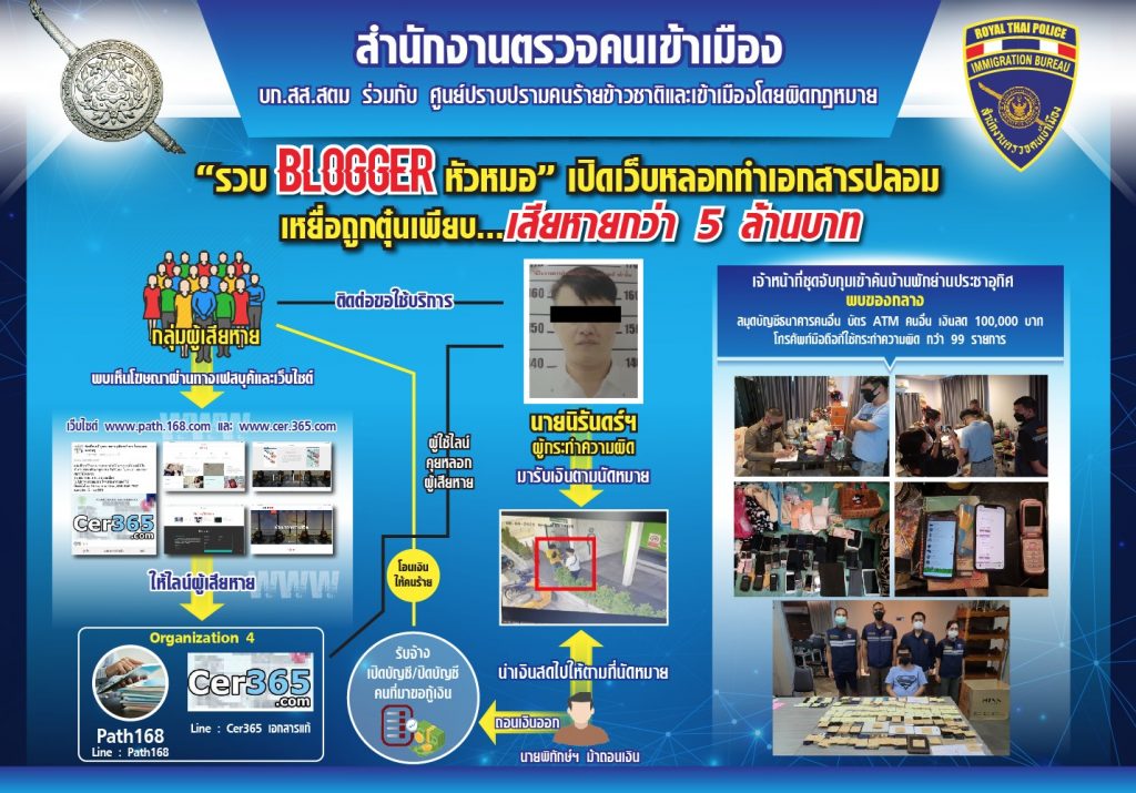 สืบเนื่องมาจาก เจ้าหน้าที่ตำรวจ บก.สส.สตม. และเจ้าหน้าที่ ศปชก.สตม. ได้รับแจ้งจากประชาชนกรณีถูกมิจฉาชีพ แอบอ้างว่าสามารถออกวุฒิการศึกษา และออกใบแจ้งผลการสอบภาษาอังกฤษได้ จากเว็บไซต์ www.path168.com และ www.cer365.com โดยมีค่าใช้จ่ายในการดำเนินการหลักแสนบาท ซึ่งมีผู้หลงเชื่อชำระเงิน แล้วคนร้ายจะบ่ายเบี่ยง แจ้งเหตุขัดข้อง ว่าไม่สามารถดำเนินการได้จนกระทั่งออกอุบายให้ชำระเงินเพิ่ม แต่เมื่อผู้หลงเชื่อชำระเงินเพิ่มไปแล้วหรือต้องการยกเลิกการออกใบรับรองดังกล่าวและต้องการขอเงินคืน กลับถูกปฏิเสธและตัดช่องทางการติดต่อเชิดเงินหลบหนี ผู้ถูกหลอกจึง เชื่อว่าตนได้รับความเสียหายและแจ้งความร้องทุกข์ และเดินทางมาให้ข้อมูลแก่เจ้าหน้าที่ชุดสืบสวน ศปชก.สตม. เพื่อสืบสวนติดตามจับกุมคนร้ายมาดำนินคดีตามกฎหมายต่อไป