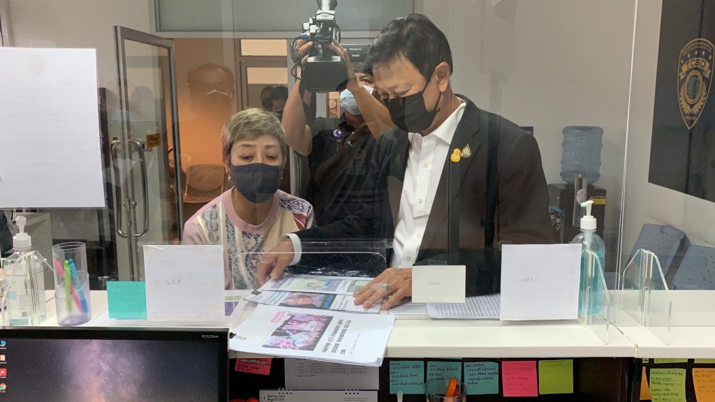 วันที่ 19 ส.ค.64 เวลา 11.00 น.ที่กองบังคับการปราบปรามการกระทำความผิดเกี่ยวกับอาชญากรรมทางเทคโนโลยี (บก.ปอท.) : นางมาวดี ศรีวิรัตน์ อายุ 55 ปี ลูกสาว “อาม่าฮวย” นางฮวย ศรีวิรัตน์ มารดา พร้อมด้วย นายกฤษฎา อินทามระ ทนายความ เดินทางเข้าพบ ร.ต.อ.ฐานันดร สาสูงเนิน และ ร.ต.ท.หญิง รัฐฐานนท์ คชนนท์ รอง สว.(สอบสวน) กก.3 บก.ปอท.
