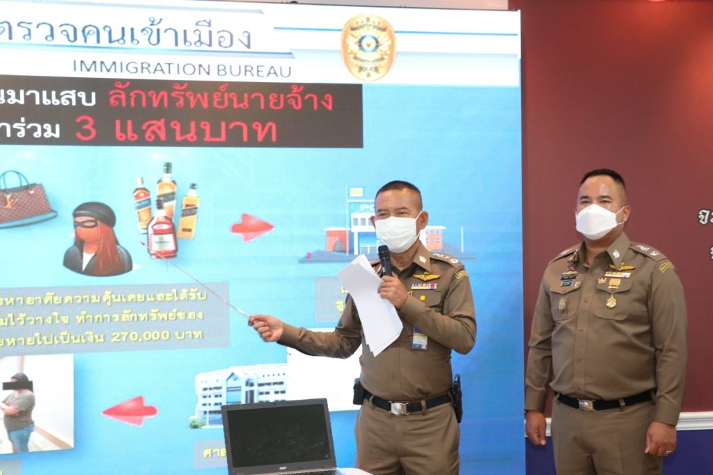 เจ้าหน้าที่ตำรวจ กก.1 บก.สส.สตม. จับกุม น.ส.เมียวฯ อายุ 34 ปี สัญชาติเมียนมา ผู้ต้องหาตามหมายจับศาลอาญา ที่ 1658/2562 ซึ่งต้องหาว่ากระทำความผิดฐาน “ลักทรัพย์ที่เป็นของนายจ้าง” นำตัวส่งพนักงานสอบสวน สน.พหลโยธิน ดำเนินคดีตามกฎหมาย สถานที่จับกุม ภายในซอยนาคนิวาส 48 แยก 7 ถนนนาคนิวาส แขวงลาดพร้าว เขตลาดพร้าว กรุงเทพฯ
