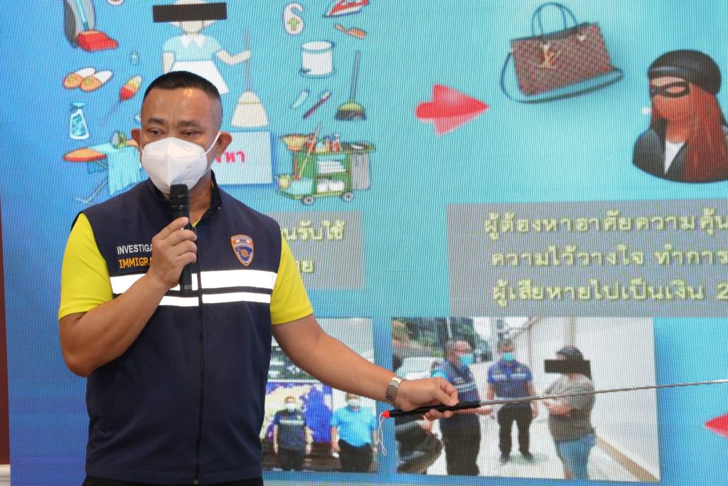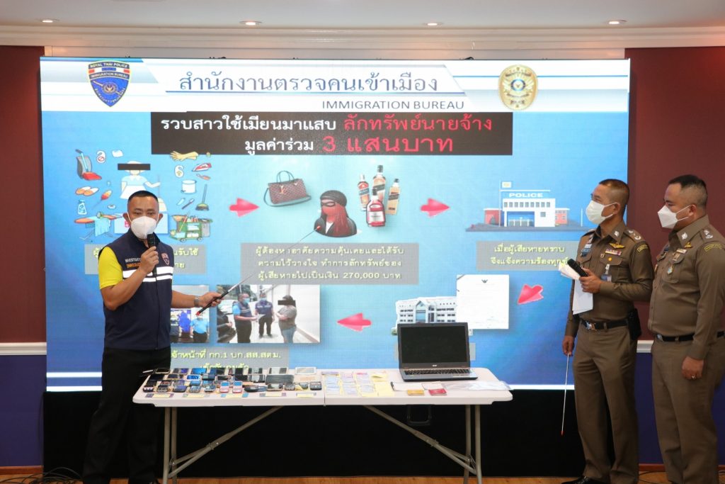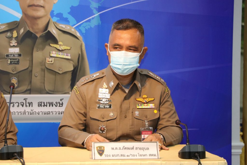 วันที่ 19 ส.ค.64 เวลา 10.00 น.ณ ห้องอเนกประสงค์ ชั้น 1 อาคาร 1 สตม.ซอยสวนพลู แขวงทุ่งมหาเมฆ เขตสาทร กรุงเทพมหานคร : พล.ต.ท.สมพงษ์ ชิงดวง ผบช.สตม.พร้อมด้วย พล.ต.ต.ณฐพล แสวงกิจ,พล.ต.ต.สิทธิชัย โล่กันภัย,พล.ต.ต.อาชยน ไกรทอง รอง ผบช.สตม.,พล.ต.ต.ศิลปคมณ์ เอี่ยมวงศ์ รอง ผบช.สตม.,พล.ต.ต.พันธนะ นุชนารถ ผบก.สส.สตม.,พ.ต.อ.สถิตย์ พรมอุทัย รอง ผบก.สส.สตม.,พ.ต.อ.เชิงรณ ริมผดี รอง ผบก.ตม.2,พ.ต.อ.ภัคพงศ์ สายอุบล รอง ผบก.ตม.1,พ.ต.อ.ชย พานะกิจ ผกก.(สอบสวน) กลุ่มงานสอบสวน บก.สส.สตม. และเจ้าหน้าที่ตำรวจ บก.สส.สตม. ร่วมกับเจ้าหน้าที่ ศปชก.สตม. ร่วมแถลงข่าวผลการจับกุม ดังนี้
