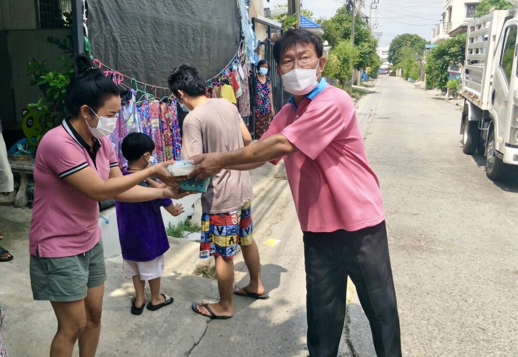 วันเดียวกัน ได้ส่งต่อ มอบให้นายสมชาย ทิวทองธนา ประธานชุมชนบ่อฝรั่งริมน้ำพัฒนา เขตจตุจักร กรุงเทพมหานคร เพื่อช่วยแบ่งเบาภาระและบรรเทาความเดือดร้อนในสถานการณ์การแพร่ระบาดเชื้อไวรัสโควิด-19