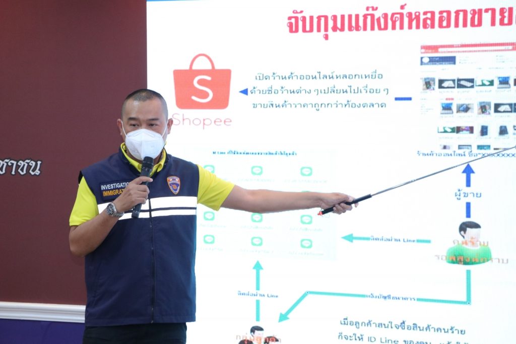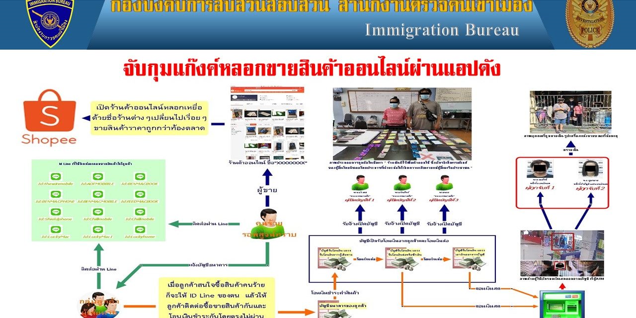 สืบเนื่องมาจาก เจ้าหน้าที่ตำรวจ กก.2 บก.สส.สตม. ได้รับแจ้งจากประชาชนทั้งชาวต่างชาติและคนไทยกรณีถูกกลุ่มคนร้ายร่วมกันฉ้อโกงประชาชน ด้วยวิธีการเปิดร้านค้าออนไลน์ในแอปพลิเคชัน Shopee จำหน่ายสินค้าประเภทอิเล็กทรอนิกส์ อาทิ โทรศัพท์มือถือ,คอมพิวเตอร์โน้ตบุ๊ก และนาฬิกาอิเล็กทรอนิกส์ แสร้งว่ามีสินค้าจำหน่ายจริง และเมื่อมีลูกค้าสนใจซื้อสินค้าก็ให้ติดต่อทางแอปพลิเคชันไลน์ เพื่อต่อรองราคาสินค้า จนลูกค้าพอใจในราคาสินค้าที่จะซื้อ ก็จะส่งหมายเลขบัญชีธนาคารที่รับโอนเงินให้ลูกค้าโอนเงินชำระค่าสินค้า เข้าบัญชีธนาคารของคนร้ายที่เปิดรองรับไว้ แล้วถอนเงินสดจากตู้เอทีเอ็ม โดยไม่ต้องชำระเงินค่าสินค้าผ่านทาง วอลเล็ทของแอปพลิเคชัน Shopee แต่เมื่อผู้เสียหายชำระเงินไปแล้วกลับไม่ได้สินค้าตามที่ต้องการ และเมื่อผู้เสียหายขอเงินคืนกลับถูกปฏิเสธและตัดช่องทางการติดต่อ จึงเชื่อว่าตนถูกหลอก จึงได้แจ้งความร้องทุกข์ให้ข้อมูลแก่เจ้าหน้าที่ชุดสืบสวน กก.2 บก.สส.สตม.