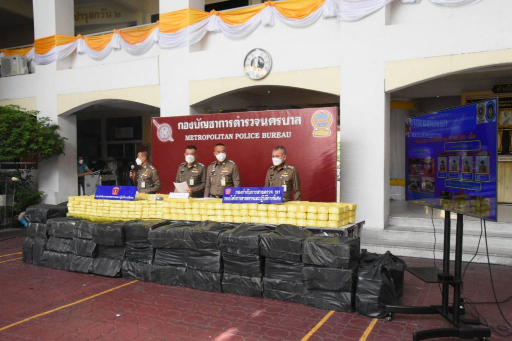 วันที่ 20 ส.ค.64 : เวลา 10.30 น. ณ ลานเอนกประสงค์ ชั้น 1 บช.น.: พล.ต.ท.ภัคพงศ์ พงษ์เภตรา ผบช.น. พร้อมด้วย พล.ต.ต.ปิยะ ต๊ะวิชัย,พล.ต.ต.พีระพงศ์,พล.ต.ต.สําราญ นวลมา รอง ผบช.น.,พล.ต.ต.สมบูรณ์ เทียนขาว ผบก.สปพ., พ.ต.อ.ประสงค์ อานมณี,พ.ต.อ.สุรเชษฐ์ บัณฑิตย์,พ.ต.อ.วรวิทย์ ญาณจินดา,พ.ต.อ.ศุภวัช ปานแดง รอง ผบก.สปพ.,พ.ต.อ.ปิยรัช สุภารัตน์ ผกก.สายตรวจ บก.สปพ.,พ.ต.ท.อัครพล โทยะ,พ.ต.ท.วสันต์ ธวัชชัยวิรุตษ์,พ.ต.ท.คงศักดิ์ ศรีโหร,พ.ต.ท.สุทธิเดช โอฬาริ รอง ผกก.สายตรวจ บก.สปพ. ร่วมกันแถลงผลการปฏิบัติดังนี้ 191 จับยาบ้าล็อตมหึมา เครือข่ายแก๊งต่ำเอี่ยว ยึดยาบ้ากว่า 11 ล้านเม็ด มูลค่า 400 กว่าล้านบาท