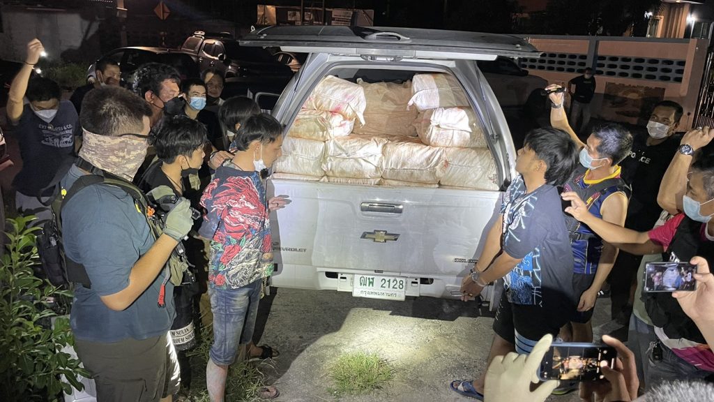 โดยสามารถจับกุมผู้ต้องหา จำนวน 6 รายคือ 1.นายคุณาวุธ วงค์ศรี (ทีม) อายุ 20 ปี,2.นายสุธิพร น้อยแก้ว (บอย) อายุ 26 ปี,3.นายแก๊บ จงเฟื่องปริญญา (เป้) อายุ 24 ปี,4.นายชาคริต เหยี่ยวทอง (อิ้ม) อายุ 22 ปี,5.นายณัฐพล นาวงษ์ (เบิร์ด) อายุ 30 ปี และ 6.นายสราวุธ แก้วปักษา (แบงค์) อายุ 22 ปี พร้อมด้วยของกลาง 1.ยาบ้า จำนวนประมาณ 11,110,000 เม็ด,2.อาวุธปืน ขนาด .38 super แบบออโตเมติก พร้อมแมกกาซีน ยี่ห้อ LLAMA จำนวน 1 กระบอก,3. กระสุนปืนขนาด .38 Super จำนวน 9 นัด บรรจุอยู่ในแมกกาซีน,4.กระสุนปืนขนาด 9 มม. จำนวน 60 นัด,5.รถยนต์กระบะติดแครี่บอย ยี่ห้อเซฟโรเลต ทะเบียน ฒฬ 2128 กทม.,6.รถยนต์เก๋ง ยี่ห้อฮอนด้า รุ่น crv ทะเบียน 4 กภ 4038 กทม.,7.โทรศัพท์มือถือ จำนวน 6 เครื่อง และ 8.ไอซ์ น้ำหนักประมาณ 12 กรัม