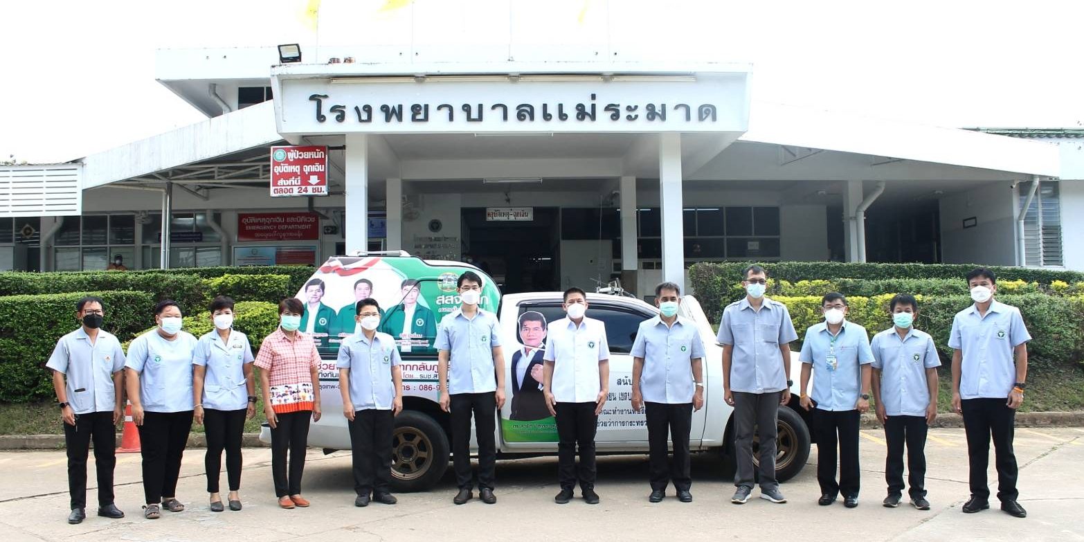 เพื่อใช้ในภารกิจป้องกัน ควบคุมโรคโควิด-19 และภารกิจที่เกี่ยวข้องอื่นๆ ในการบริการประชาชนในพื้นที่ โดยการ รับ-ส่ง ผู้ป่วยโควิด-10 เพื่อลดปัญหาผู้ป่วยโควิด-19 ไม่มีรถ เดินทางมาโรงพยาบาล หรือ ศูนย์ดูแลโควิต-19 ในชุมชน (Covid-19 Care Center โดยมอบให้โรงพยาบาลแม่ระมาด อำเภอแม่ระมาด จังหวัดตาก ไว้ใช้ในการดำเนินการต่อไป