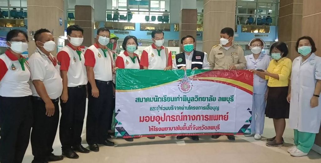 และเวลาต่อมา คณะกรรมการสมาคมนักเรียนเก่าพิบูลวิทยาลัย นำโดยนายมลชัย สูติรัตน นายกสมาคมนักเรียนเก่าพิบูลวิทยาลัยเป็นตัวแทนศิษย์เก่าทุกท่านร่วมบริจาคเงินมอบชุด PPE. จำนวน 50 ชุดมอบเครื่องผลิต ออกซิเจน จำนวน 1 เครื่องให้กับโรงพยาบาลพระนารายณ์มหาราชโดยมี ผศ.(พิเศษ) นพ.ทศพร ศิริโสภิตกุล ผู้อำนวยการโรงพยาบาลพระนารายณ์มหาราช