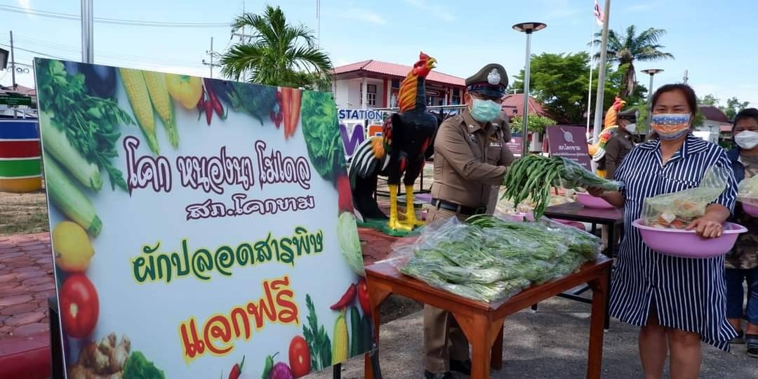 ส่วนทางด้านของโคกหนองนา โมเดล สถานีตำรวจภูธรโคกขาม แจกยาฟ้าทะลายโจรฟรี โดยพตอ.สมชาย ขอค้าผกก.สภ.โคกขามจังหวัดสมุทรสาคร พร้อมด้วย กต.ตร.สภ.และที่ปรึกษาร่วมกันจัดทำโครงการโคกหนองนา โมเดลในพื้นที่ของโรงพัก เพิ่อปลูกผักสวนครัวปลูกสมุนไพรปลอดสารพิษ แจกจ่ายในช่วงเวลาเช้าของทุกๆวัน ให้กับประชาชนที่สนใจสามารถขอรับผ้กปลอดสาร กระชายขาว และยาฟ้าทะลายโจรได้ที่สถานีตำรวจภูธรโคกขามจังหวัดสมุทรสาครได้ทุกวัน