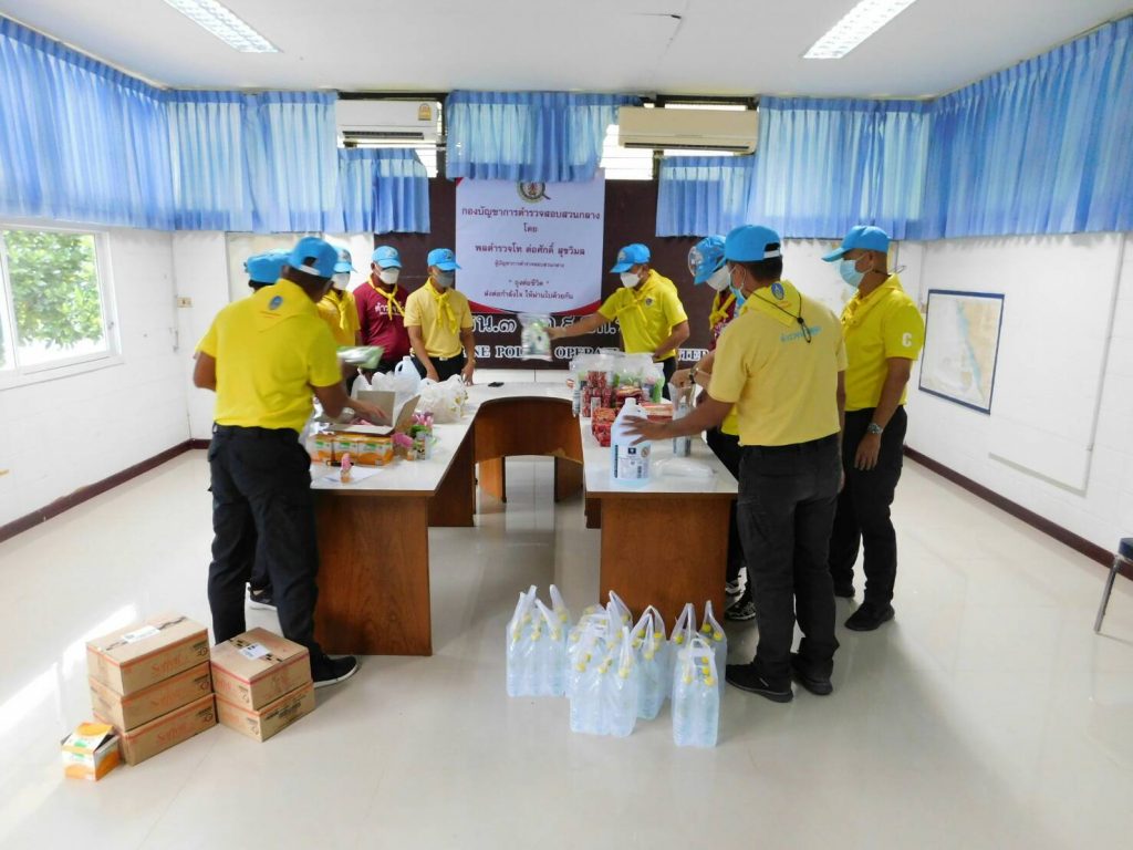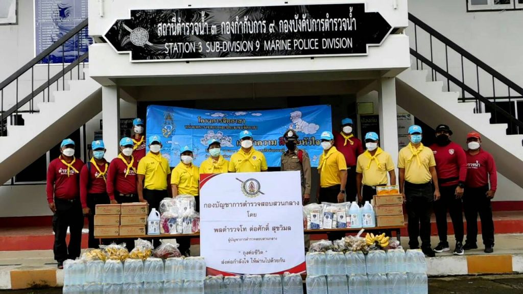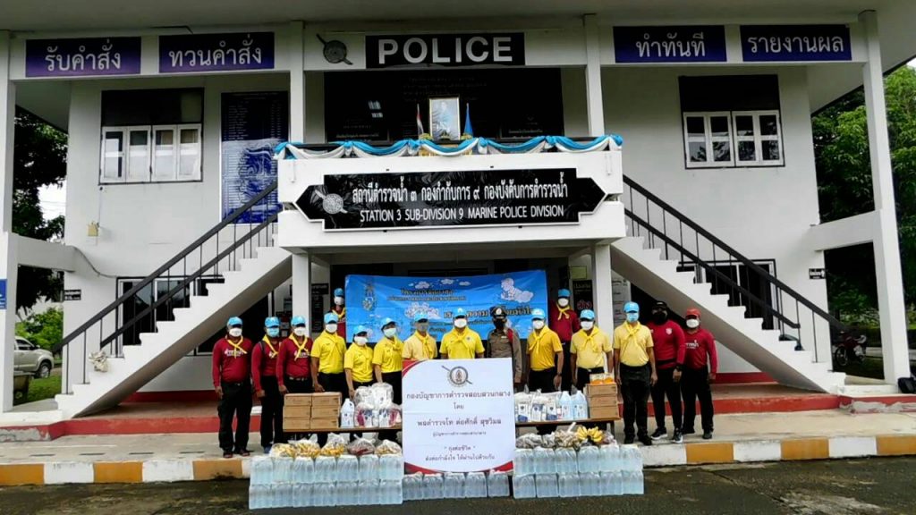 วันนี้ 24 สิงหาคม 2564 ตำรวจน้ำ กองกำกับการ 9 โดย พ.ต.อ. จตุรวิทย์ คชน่วม ผู้กำกับ 9 กองบังคับการตำรวจน้ำ ได้กล่าวว่าด้วยปัจจุบันได้เกิดการแพร่ระบาดของโรคติดเชื้อไวรัสโคโรนา 2019 (COVID -19) ที่มีการแพร่ ระบาดไปทั่วโลก ส่งผลกระทบ ต่อชีวิตของประชาชนเป็นวงกว้างทั่วทั้งประเทศ โดย พล.ต.ต. สมควร พึ่งทรัพย์ ผบก.รน. ได้เน้นย้ำถึงความสำคัญและให้ ทุกหน่วยช่วยเหลือประชาชน อย่างเต็มที่ ในส่วนของตำรวจน้ำจังหวัดกระบี่ ตรัง และสตูล จึงได้มีมาตรการ เร่งด่วนในด้านต่าง ๆ เพื่อป้องกันและควบคุมการแพร่ระบาดโดยเฉพาะประชาชนที่มีบ้านพักอาศัยอยู่ริมทะเล ประกอบอาชีพประมง เดินทางโดยเรือเป็นปกติซึ่งการเข้าไปช่วยเหลือเป็นไปด้วยความยากลำบากต้องอาศัยเรือเป็นหลัก ตำรวจน้ำ เล็งเห็นถึงปัญหาดังกล่าว จึงได้จัดทำโครงการการช่วยเหลือประชาชน(ชาวเล) ที่ได้รับผลกระทบ กรณีสถานการณ์การแพร่ระบาดของโรคติดเชื้อไวรัสโคโรนา 2019 (COVID -19) เป็นการบรรเทาความเดือดร้อนของประชาชนผู้ได้รับผลกระทบ ที่มีบ้านพักอาศัยอยู่ริมทะเล และต้องกักตัวเป็นเวลา 14 วันตลอดทั้งสนับสนุนมาตรการตามประกาศของคณะกรรมการควบคุมโรคติดต่อจังหวัดกระบี่ ตรัง และสตูลสิ่งของต่างๆที่เรานำไปส่งต่อให้ประชาชน ส่วนหนึ่งมาจากการร่วมกันของข้าราชการตำรวจน้ำกองกำกับการ 9ฯ ที่ได้ร่วมกันทำบุญในครั้งนี้และได้รับการสนับสนุน จาก พล.ต.ท.ต่อศักดิ์ สุขวิมล ผู้บัญชาการตำรวจสอบสวนกลางได้ร่วมสนับสนุนอุปกรณ์ทางการแพทย์ ยาฟ้าทะลายโจร อุปกรณ์ป้องกันและเครื่องอุปโภคบริโภค เพื่อแจกจ่ายให้ประชาชนที่กักตัว ตามโครงการฯ