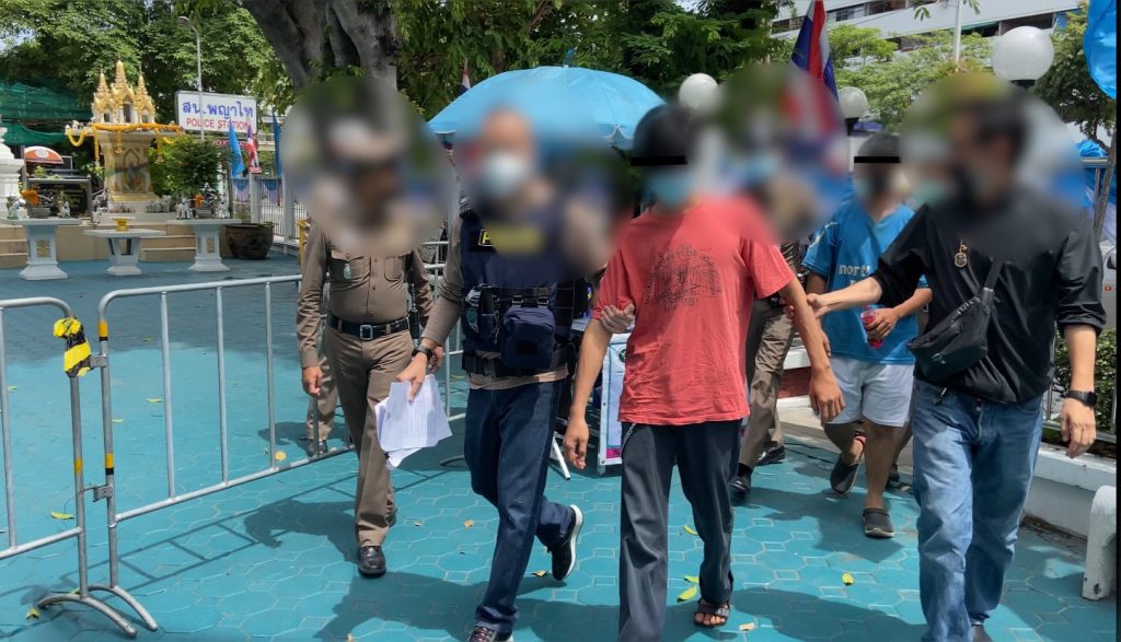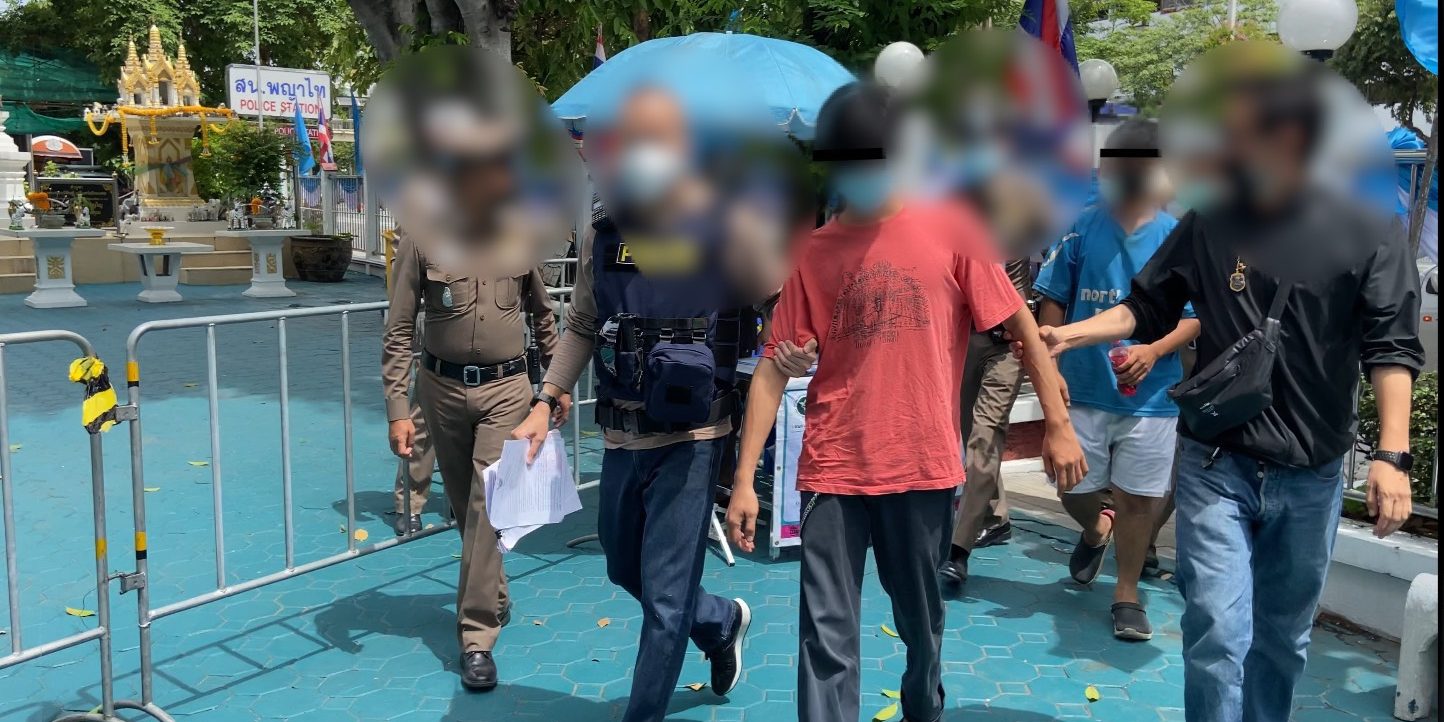 จากนั้นได้ขับขี่รถจักรยานยนต์หลบหนีไป หลังจากเกิดเหตุ เจ้าหน้าที่ตำรวจฝ่ายสืบสวน สน.พญาไท ได้พิสูจน์ทราบตัวบุคคลและยานพาหนะของผู้ต้องสงสัย จนพบตำหนิรูปพรรณของผู้ต้องสงสัย และรถจักรยานยนต์คันที่ผู้ต้องสงสัยขับขี่ เมื่อรวบรวมพยานหลักฐานเพิ่มเติมจากทางสื่อโซเชียลมีเดีย และพยานบุคคลที่เห็นเหตุการณ์ในวันเกิดเหตุ สามารถยืนยัน ระบุตัวผู้ต้องสงสัยได้ เจ้าหน้าที่ตำรวจ จึงได้ขออนมัติศาลเยาวชนและครอบครัวกลางออกหมายจับ นายตันติกรฯ หนึ่งในผู้ต้องหา ซึ่งศาลได้อนุมัติตามหมายจับที่ 28/64 ลงวันที่ 24 ส.ค.64 ในความผิดฐาน “ร่วมกันวางเพลิงเผาทรัพย์ผู้อื่น,มั่วสุมกันตั้งแต่สิบคนขึ้นไป ใช้กำลังประทุษร้ายขู่เข็ญว่าจะใช้กำลังประทุษร้าย หรือกระทำการอย่างหนึ่งอย่างใดให้เกิดความวุ่นวายขึ้นในบ้านเมือง,ร่วมกันจัดกิจกรรมรวมกลุ่มของบุคคลที่มีจำนวนรวมกันมากกว่าห้าคน ในเขตพื้นที่ที่มีการประกาศหรือคำสั่งกำหนดเป็นพื้นที่ควบคุมสูงสุดและเข้มงวด,ร่วมกันชุมนุมหรือทำกิจกรรมที่มีความเสี่ยงต่อการแพร่โรคในพื้นที่ที่มีการประกาศหรือคำสั่งเป็นพื้นที่ควบคุมสูงสุดและเข้มงวด และร่วมกันทำให้เสียทรัพย์”