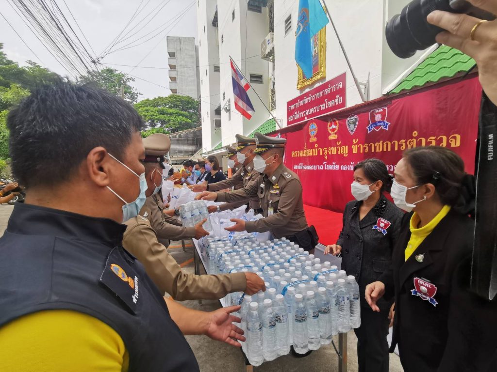 วันที่ 25 ส.ค.64 เวลา 09.30 น. : พล.ต.ท.ภัคพงศ์ พงษ์เภตรา ผบช.น. พร้อมด้วย พล.ต.ท.จิรพัฒน์ ภูมิจิตร จตร.สบ.8 ปฏิบัติราชการ บช.น.,พล.ต.ต.ปิยะ ต๊ะวิชัย รอง ผบช.น. และ คุณ จิตภัสร์ กฤดากร รองประธานคณะกรรมาธิการตำรวจ สภาผู้แทนราษฎร ได้เดินทางมามอบสิ่งของเครื่องใช้ให้กับข้าราชการตำรวจและครอบครัวผู้อยู่อาศัย ณ แฟลตตำรวจ สน.โชคชัย เพื่อเป็นขวัญและกำลังใจ ในช่วงการแพร่ระบาดของเชื่อไวรัสโควิด-19 โดยมีพล.ต.ต.พรชัย ขจรกลิ่น ผบก.น.4,กต.ตร.บก.น.4 และข้าราชการตำรวจให้การต้อนรับ ณ แฟลตตำรวจ สน.โชคชัย
