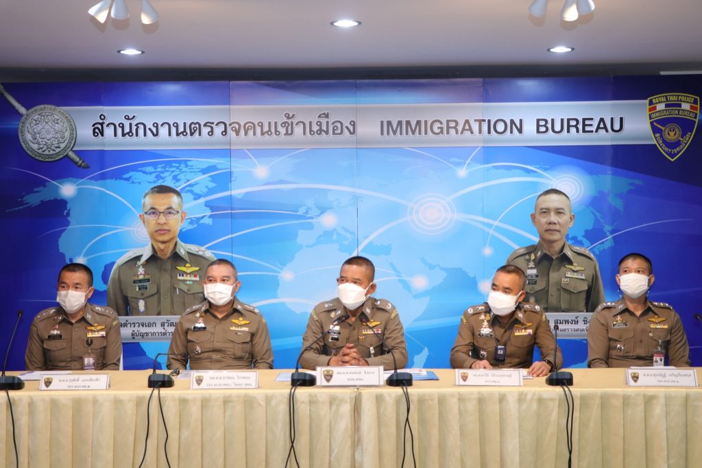 วันที่ 25 ส.ค.64 เวลา 10.30 น.ณ ห้องอเนกประสงค์ ชั้น 1 อาคาร 1 สตม. ซอยสวนพลู แขวงทุ่งมหาเมฆ เขตสาทร กรุงเทพมหานคร : พล.ต.ท.สมพงษ์ ชิงดวง ผบช.สตม.พร้อมด้วย พล.ต.ต.อาชยน ไกรทอง รอง ผบช.สตม.,พล.ต.ต.วีรพล เจริญศิริ ผบก.ตม.2,พ.ต.ท.เชิงรณ ริมผดี,พ.ต.อ.รุ่งศักดิ์ แสงเสียงฟ้า รอง ผบก.ตม.2 และ พ.ต.อ.ชัยธนันท์ จิรปิยเศรษฐ์ ผกก.สส.ปป.บก.ตม.2 ร่วมแถลงข่าว