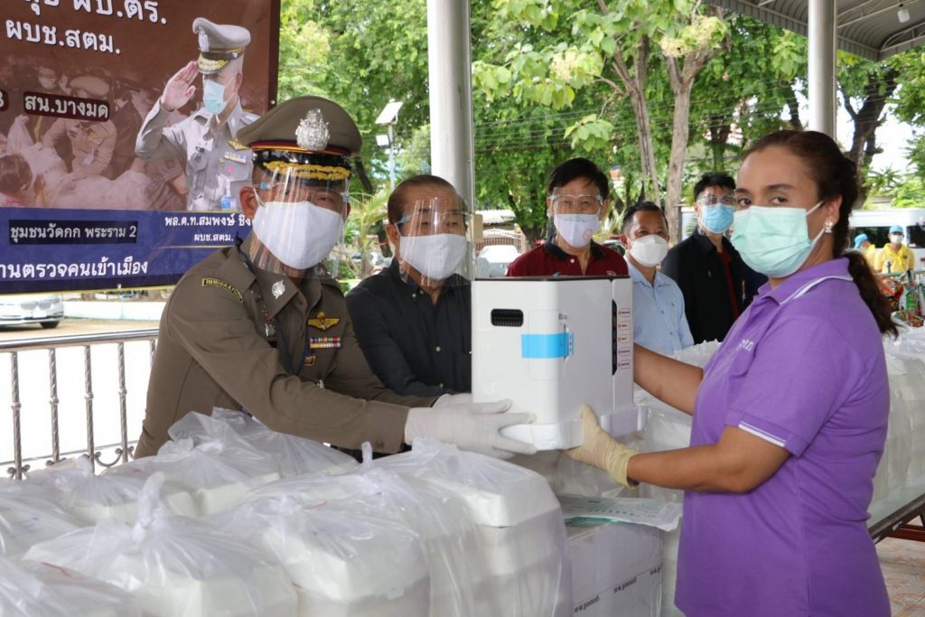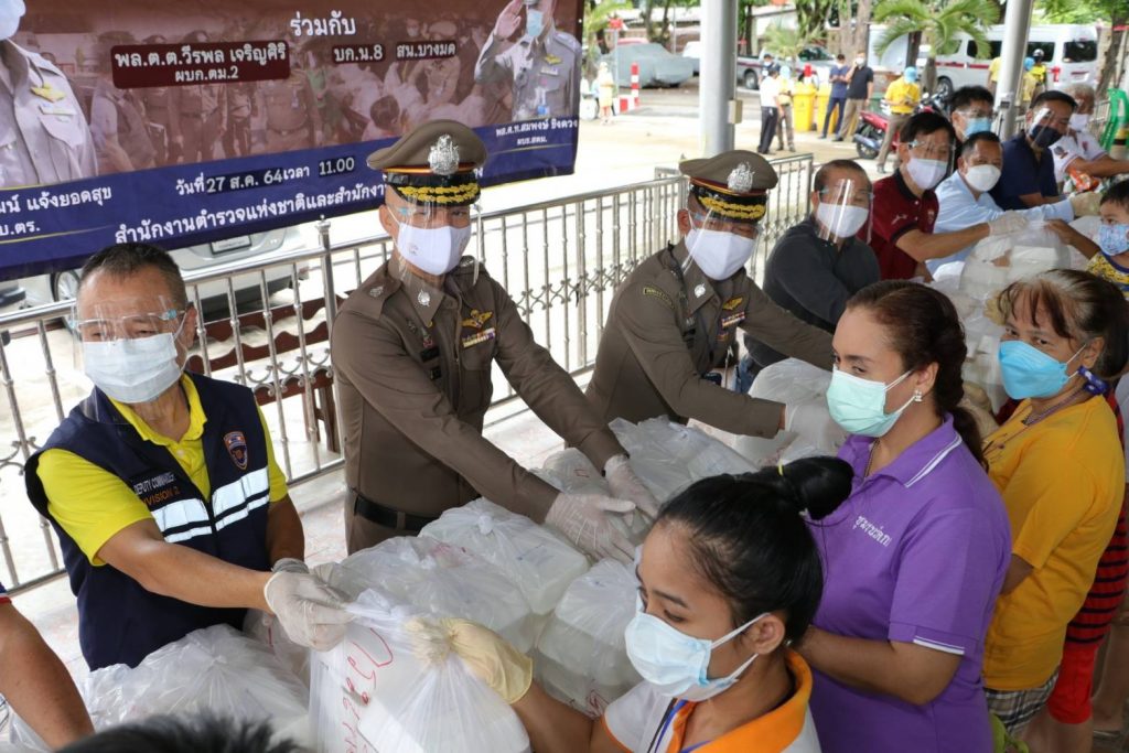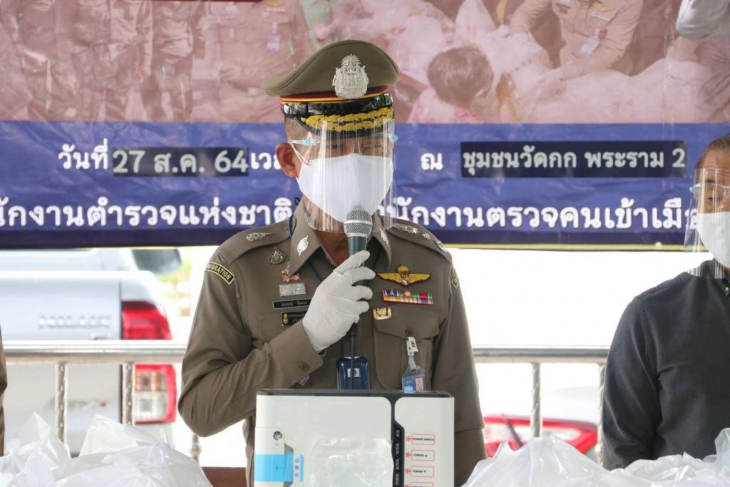 เมื่อวันที่ 27 ส.ค.64 เวลา 11.00 น. พล.ต.ท.สมพงษ์ ชิงดวง ผบช.สตม. พร้อมด้วย พล.ต.ต.วีรพล เจริญศิริ ผบก.ตม.2,พ.ต.อ.ชัยยศ วรักษ์จุนเกียรติ รอง ผบก.ตม.2 ร่วมกับ พล.ต.ต.โชคชัย งามวงศ์ ผบก.น.8 และ สน.บางมด โดย พ.ต.อ.ปริญญา เหลืองอุทัย ผกก.สน.บางมด และคุณศิระ มณีวัฒนเศรษฐ์ ประธาน กต.ตร.สน. บางมด มอบอาหารกล่อง,น้ำดื่ม,ขนม จำนวน 500 ชุด