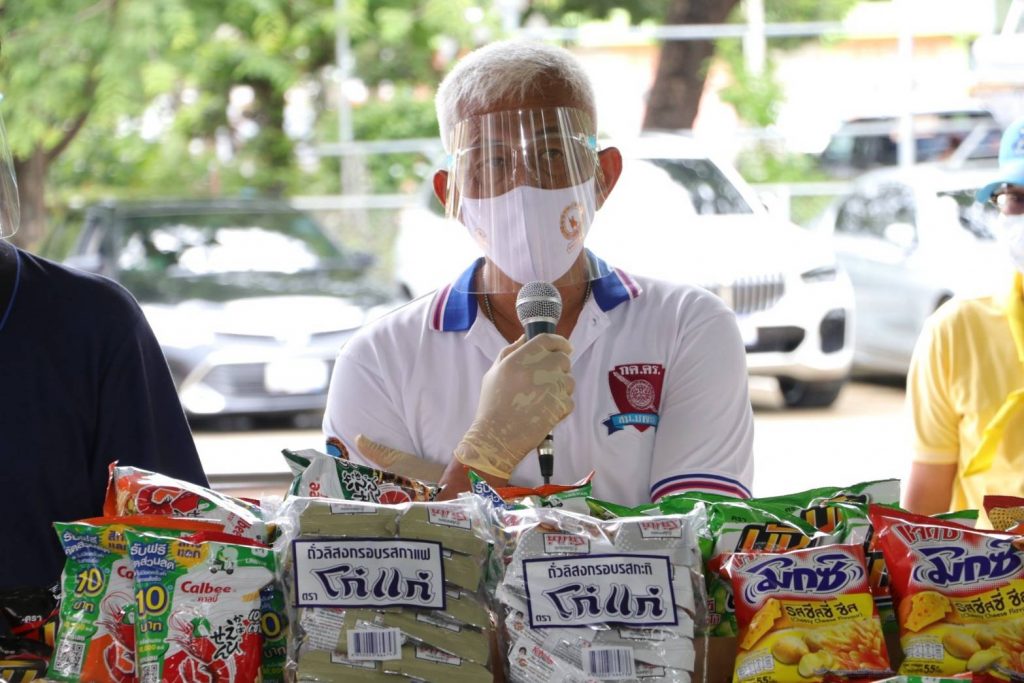 และยังมีภาคเอกชนได้ร่วมบริจาคสิ่งของในครั้งนี้ด้วย คือ กลุ่มชมรมนักธุรกิจสุขสวัสดิ์ 14 ร่วมบริจาคของอุปโภคบริโภค และเครื่องผลิตออกซิเจน ซึ่งทั้งหมดได้ร่วมกันมอบสิ่งของดังกล่าวให้แก่ ชุมชนวัดกก ที่ตั้งอยู่บริเวณ พระราม 2 แขวงท่าข้าม เขตบางขุนเทียน กทม. โดยมีคุณประกายวรรณ ชูศักดิ์ทัย ตัวแทนชุมชนมาเป็นผู้รับมอบ เพื่อนำไปแจกจ่ายให้แก่สมาชิกในชุมชนผู้ได้รับความเดือดร้อนจากการแพร่ระบาดของเชื้อไวรัสโควิด-19 ต่อไป