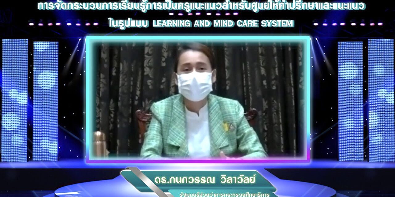 เมื่อวันที่ 27 สิงหาคม 2564 : ดร.กนกวรรณ วิลาวัลย์ รัฐมนตรีช่วยว่าการกระทรวงศึกษาธิการ เป็นประธานในพิธีเปิดการอบรม “การจัดกระบวนการเรียนรู้เพื่อการแนะแนวและการให้คำปรึกษา สำหรับศูนย์ให้คำปรึกษา (กศน.) ในรูปแบบ Learning and Mind Care Center” ผ่านระบบการประชุมออนไลน์ (ZOOM Cloud Meetings) ซึ่งการอบรมจัดขึ้นระหว่าง วันที่ 30 สิงหาคม 2564-15 กันยายน 2564 โดยใช้หลักสูตร “ต้นทุนชีวิต” และทีมวิทยากรผู้ทรงคุณวุฒิ จากศูนย์คุณธรรม (องค์การมหาชน) ในสังกัดกระทรวงวัฒนธรรม ร่วมกับผู้ที่เข้ารับการอบรมในครั้งนี้ซึ่ง เป็นครู (กศน.) ที่รับผิดชอบดูแลศูนย์ให้คำปรึกษา จากสถานศึกษาในสังกัด (กศน.) ทั่วประเทศ จำนวน 77 คน