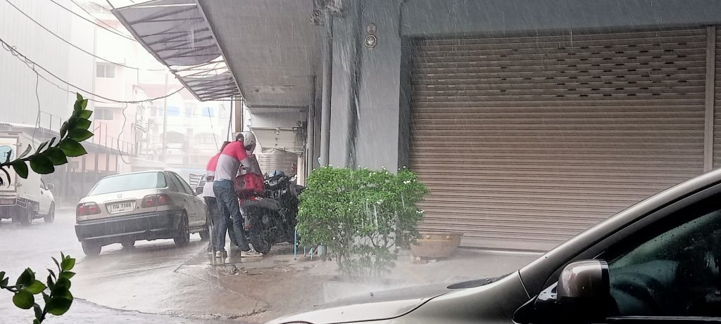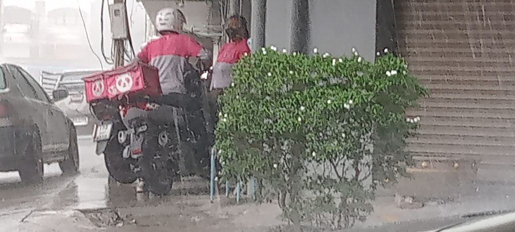 คุณจะให้ทิปเพิ่มไหม? ที่ลพบุรี สองพนักงาน ฟู้ดแพนด้า รอรับออเดอร์เตรียมส่งให้ลูกค้า บริเวณศูนย์การค้าสระแก้ว ได้หลบฝน ตรงอาคารทวีมอเตอร์ลพบุรี ได้รับออเดอร์แล้วได้ขับรถลุยสายฝนไปส่งให้ลูกค้าเปียกแค่ไหนก็ต้องสู้ เลี้ยงปากท้อง