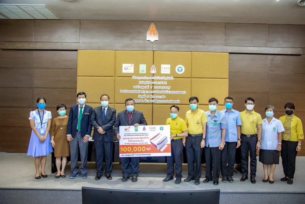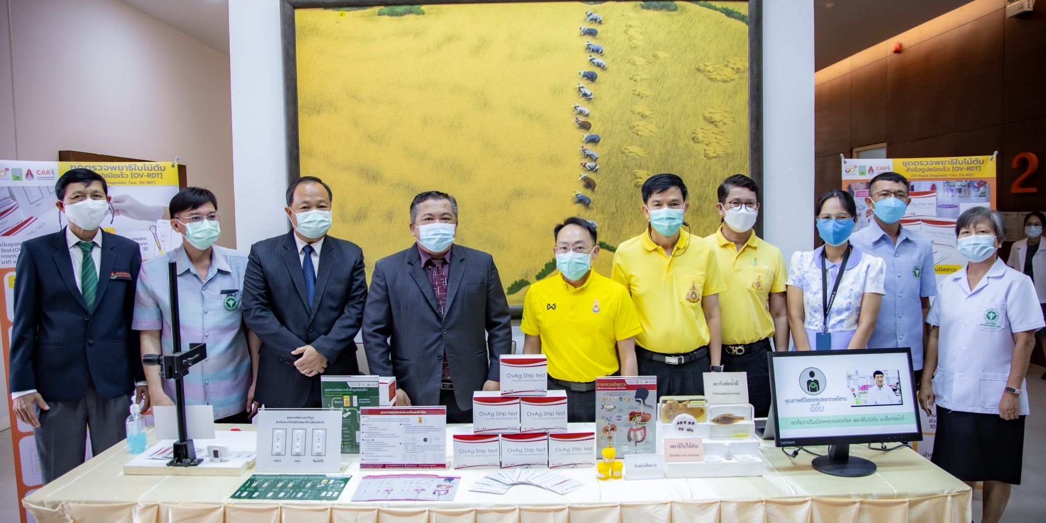 เมื่อเร็วๆ นี้ สำนักงานการวิจัยแห่งชาติ (วช.) กระทรวงการอุดมศึกษาวิทยาศาสตร์ วิจัยและนวัตกรรม (อว.) ร่วมกับ มหาวิทยาลัยขอนแก่น (มข.) จัดพิธีมอบชุดตรวจคัดกรองพยาธิใบไม้ตับสำเร็จรูปชนิดเร็ว (OV-Rapid diagnostic test; OV-RDT) จำนวน 100,000 ชุด ให้กับ เขตสุขภาพที่ 7 กระทรวงสาธารณสุข ณ ห้องประชุมสารสิน ชั้น 2 อาคารสิริคุณากร มหาวิทยาลัยขอนแก่น