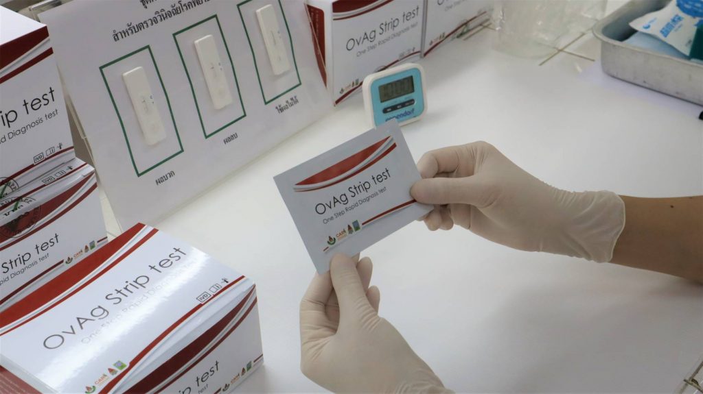 ซึ่งชุดตรวจคัดกรองพยาธิใบไม้ตับสำเร็จรูปชนิดเร็ว OV-RDT มีคุณสมบัติพิเศษที่จะช่วยให้บุคลากรของกระทรวงสาธารณสุขนำไปใช้ได้อย่างทันท่วงทีเพราะสามารถตรวจคัดกรองประชาชนจำนวนมาก ขั้นตอนในการตรวจไม่ซับซ้อน ทำได้ง่าย และไม่จำเป็นต้องใช้เครื่องมือพิเศษ สามารถดำเนินการตรวจได้โดยเจ้าหน้าที่สาธารณสุขของชุมชนสามารถดำเนินการตรวจได้ด้วยตัวเอง ที่สำคัญคือสามารถตรวจพบผู้ติดเชื้อซ่อนเร้นได้ในกรณีที่ตรวจไม่พบไข่พยาธิในอุจจาระ ทำให้ผู้ป่วยสามารถเข้าถึงการรักษาได้ง่ายขึ้น