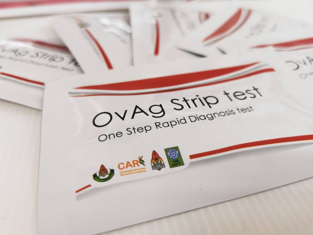 สถาบันวิจัยมะเร็งท่อน้ำดี มหาวิทยาลัยขอนแก่น ได้คิดค้นและพัฒนาการนวัตกรรมการตรวจวินิจฉัยพยาธิใบไม้ตับด้วยวิธีใหม่ ได้แก่ “ชุดตรวจพยาธิใบไม้ตับสำเร็จรูปชนิดเร็ว (OV-RDT)” โดยใช้ตัวตรวจจับจำเพาะหรือโมโนโคลนอลแอนติบอดี (monoclonal antibody) ที่มีความจำเพาะต่อพยาธิใบไม้ตับและเป็นสารตรวจจับสิ่งคัดหลั่งหรือแอนติเจนของพยาธิใบไม้ตับในปัสสาวะ ชุดตรวจปัสสาวะสำเร็จรูปดังกล่าวเป็นการพัฒนาต่อยอดจากการตรวจวิธี ELISA ให้มีรูปแบบที่ง่ายขึ้น ใช้เวลาสั้นลง และใช้ได้ในภาคสนาม โดยการตรวจใช้เวลาเพียง 10 นาที ในปัจจุบัน ได้ผลิตชุดตรวจสำเร็จรูปชนิดเร็ว (OV-Rapid diagnostic test,OV-RDT) เพื่อให้เกิดประโยชน์อย่างสูงสุดแก่ประชาชนและส่งเสริมการแก้ปัญหาโรคพยาธิใบไม้ตับในพื้นที่อย่างต่อเนื่อง