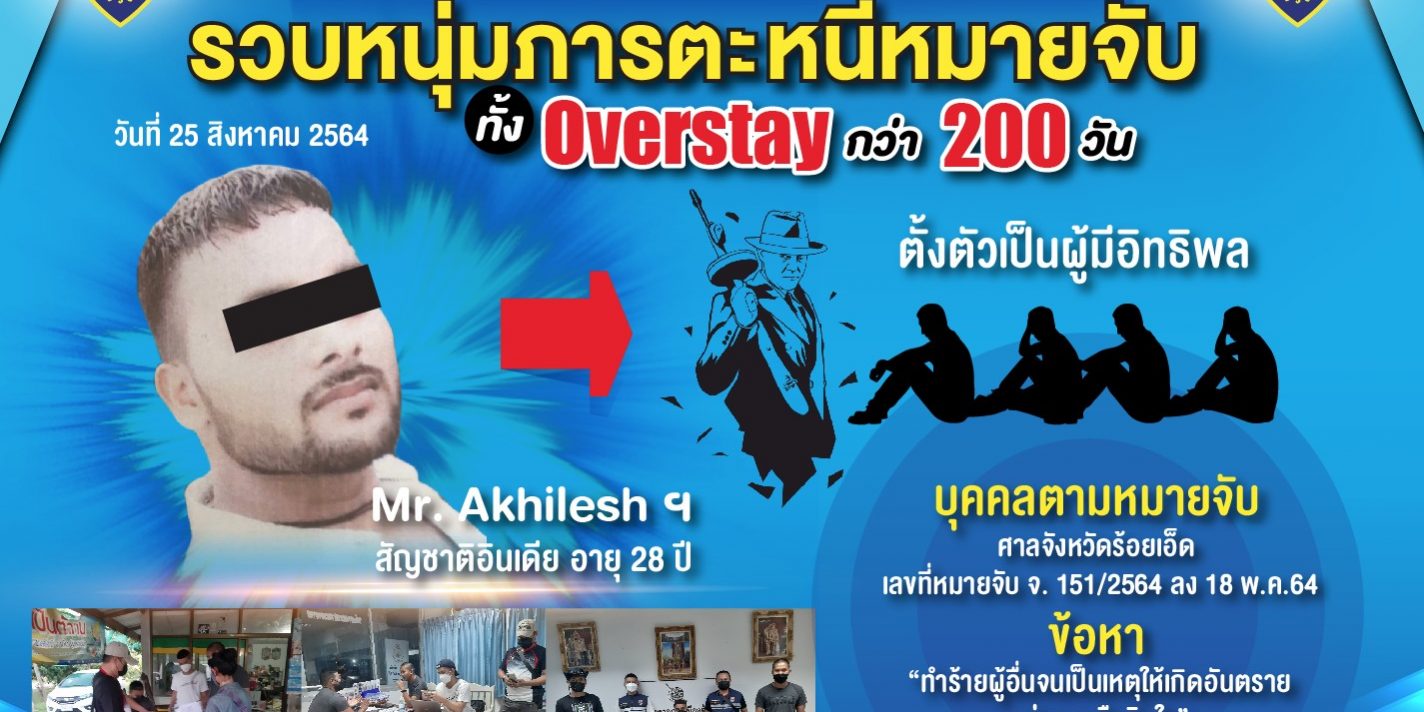 บ้านนาเมือง ต.นาเมือง อ.เสลภูมิ จ.ร้อยเอ็ด เพื่อเดินทาง จึงนำกำลังไปดักรออีกครั้ง พบบุคคลต่างด้าวเชื่อว่าเป็นชาวอินเดีย แสดงอาการมีพิรุธ เมื่อพบเจ้าหน้าที่ ทั้งทำท่าจะขับขี่รถจักรยานยนต์หลบหนี จึงได้เข้าสกัดจับตัวได้ เมื่อสอบถามจึงทราบชื่อ MR.AKHILESH สัญชาติ อินเดีย อายุ 28 ปี มีลักษณะตรงตามหมายจับศาลจังหวัดร้อยเอ็ด ในข้อหา “ทำร้ายร่างกายผู้อื่น เป็นเหตุให้ได้รับอันตรายแก่ร่างกาย” จึงควบคุมตัวไปตรวจสอบข้อมูลเพิ่มเติมยัง ตม.จ.ร้อยเอ็ด โดยเมื่อตรวจสอบผ่านระบบสารสนเทศตรวจคนเข้าเมือง (BIOMETRICS) จึงทราบว่า MR.AKHILESH สัญชาติอินเดีย เดินทางเข้ามาในราชอาณาจักรเมื่อวันที่ 21 มิ.ย.62 ได้รับการตรวจลงตราประเภทนักท่องเที่ยว ครบกำหนดอนุญาตเมื่อวันที่ 19 ส.ค.62 หรือเป็นระยะเวลากว่า 700 วัน จากพฤติกรรมดังกล่าวจึงเป็นการกระทำที่ฝ่าฝืนกฎหมายตาม พ.ร.บ.คนเข้าเมือง พ.ศ.2522 จึงนำส่งพงส.สภ.เสลภูมิ เพื่อดำเนินการตามกฎหมายต่อไป