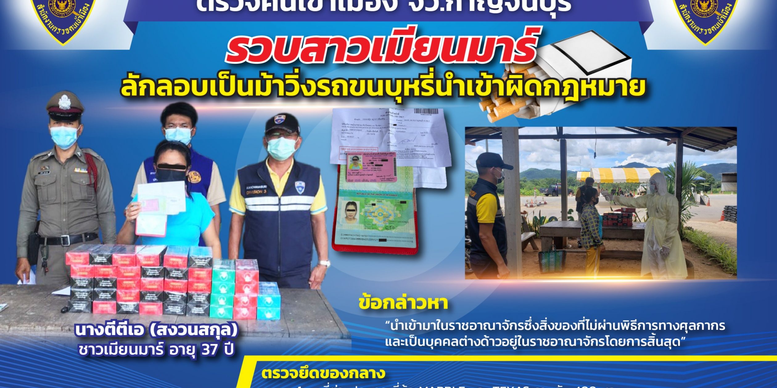 ในห้วงเวลาที่ผ่านมา การปฏิบัติหน้าที่ของเจ้าหน้าที่ทุกฝ่ายในแนวชายแดนจังหวัดกาญจนบุรีมีความเข้มงวด และกวดขันจับกุมผู้กระผิดตาม พ.ร.บ.คนเข้าเมือง และอื่นๆ ที่เกี่ยวข้องอย่างต่อเนื่อง ในกรณีนี้ชุดสืบสวน ตม.จ.กาญจนบุรี ได้ทำการสืบสวนทราบว่า มีขบวนการที่ทำธุรกิจผิดกฎหมายอยู่บริเวณชายแดนซึ่งมีการหลบหลีกไม่เข้า-ออกตามช่องทางที่ถูกต้อง ซึ่งทราบกันดีว่าเป็นต้นเหตุของโรคแพร่ระบาดในปัจจุบัน โดยในกรณีนี้สืบทราบว่าจะมีการลักลอบขนบุหรี่ต่างประเทศ เข้ามาโดยไม่มีการผ่านช่องทางด่านตรวจที่ถูกต้องซึ่งมีรายละเอียดดังต่อไปนี้