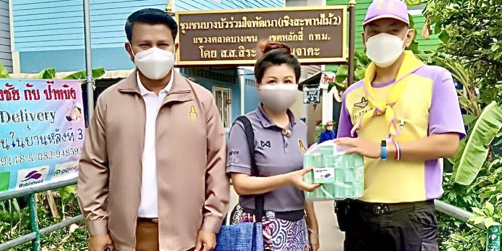 ด้านคุณสมเพียร เหลือศิริ กล่าวว่า ชุมชนบางบัวร่วมใจพัฒนา (เชิงสะพานไม้ 2 ) มีประชากรพักอาศัย 1,139 คน ในสถานการณ์การแพร่ระบาดเชื้อโควิด-19 ล่าสุดได้รักษาหายไป 40 คน และมีเพิ่มขึ้นมาอีก 20 คน ที่ยังรักษากันอยู่ โดยเฉพาะชุมชนแห่งนี้ยังเป็นศูนย์พักคอยบ้านใครบ้านมันมีการจัดแนวกั้นที่ชัดเจน ส่วนกรรมการชุมชน จะดำเนินการดูแลการจัดหาอาหาร และเครื่องผลิตออกซิเจน เครื่องช่วยหายใจ เครื่องตรวจวัดไข้ และยารักษา เพื่อดูแลกันเองในชุมชน ขอบคุณพันธมิตรจิตอาสาที่มาเติมเต็มให้ชุมชน เราจะก้าวผ่านวิกฤติโควิดไปด้วยกัน