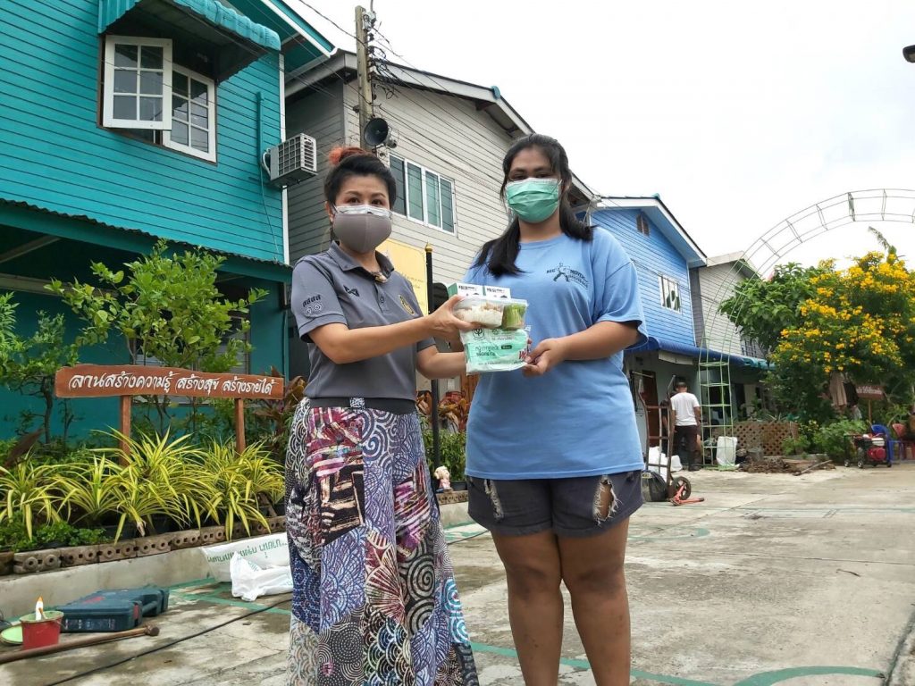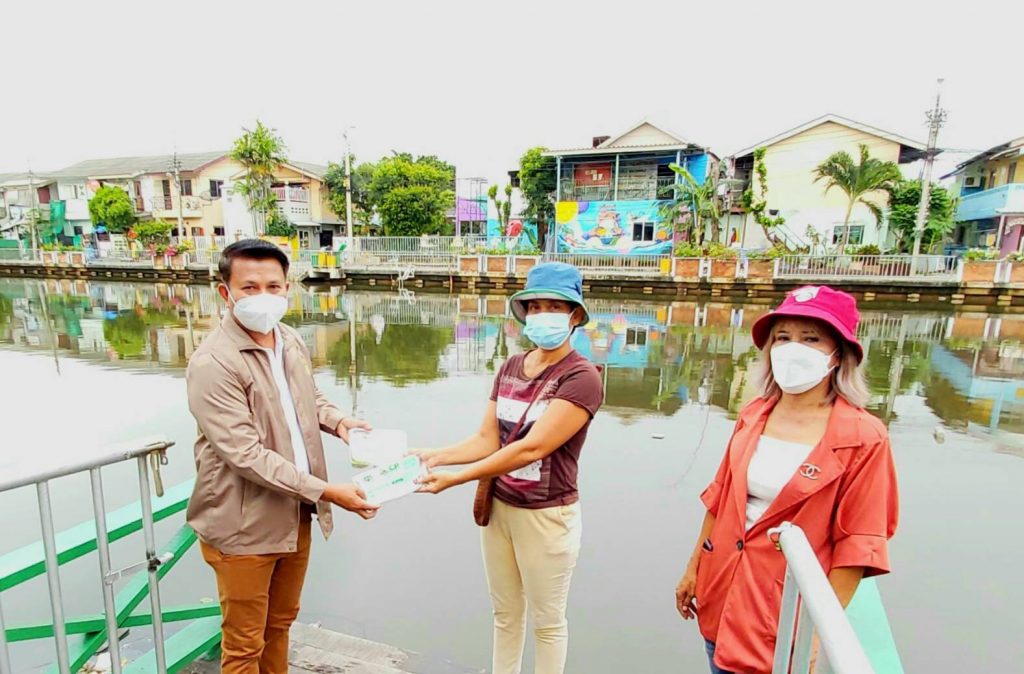 ร่วมส่งมอบข้าวกล่องพร้อมทาน,หน้ากากอนามัย และเครื่องวัดออกซิเจนปลายนิ้ว โดยมีคุณสมเพียร เหลือศิริ ประธานชุมชน และตัวแทนชุมชน รับมอบ เพื่อนำไปส่งต่อให้ผู้พักอาศัยภายในชุมชน