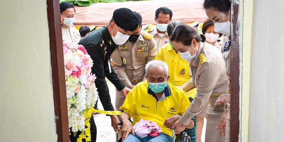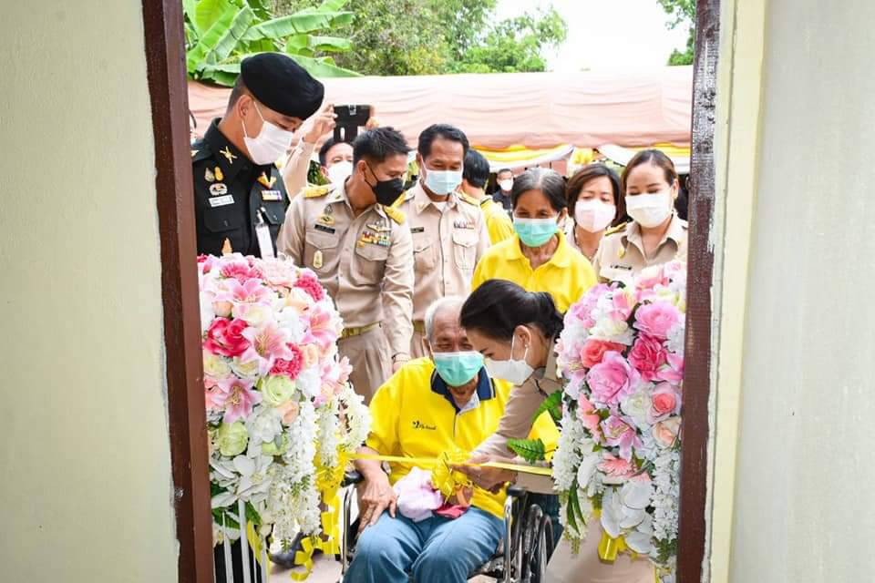 __วันที่ 1 กันยายน 2564 ที่ตำบลโพนทอง อำเภอเรณูนคร จังหวัดนครพนม นางสาวศุภพานี โพธิ์สุ นายกองค์การบริหารส่วนจังหวัดนครพนม บูรณาการร่วมกับ พันโท ศรณณัฐ นวลมณี ผู้บังคับกองพันทหารราบที่ 3 กรมทหารราบที่ 3 (ผบ.ร.3 พัน 3) และส่วนราชการในพื้นที่อำเภอเรณูนคร จังหวัดนครพนม ร่วมส่งมอบบ้านเฉลิมพระเกียรติ ให้กับ นายพิศ ภูเดช อายุ 70 ปี เป็นผู้พิการทางการเคลื่อนไหว ทำให้ไม่สามารถประกอบอาชีพได้ รายได้มาจากเบี้ยยังชีพผุ้สูงอายุและเบี้ยคนพิการ เดือนละ 1,500 บาท ส่วนภรรยาประกอบอาชีพรับจ้างทั่วไป ทำให้รายได้ไม่เพียงพอต่อรายจ่าย อาศัยเงินเบี้ยยังชีพผู้สูงอายุ เดือนละ 600 บาท มีลูกด้วยกัน 4 คน อาศัยบ้านเลขที่ 75 หมู่ที่ 4 บ้านดงบาก ตำบลโพนทอง อำเภอเรณูนคร จังหวัดนครพนม โดยการดำเนินโครงการก่อสร้างบ้านเฉลิมพระเกียรติฯ นั้น เป็นการบูรณาการจากทุกภาคส่วนที่ร่วมมือกันแสดงความจงรักภักดี โดยทางองค์การบริหารส่วนจังหวัดนครพนม ร่วมกับกองพันทหารราบที่ 3 กรมทหารราบที่ 3 และองค์การบริหารส่วนตำบลโพนทอง อำเภอเรณูนคร พร้อม เป็น 3 หน่วยงานหลัก ในการขับเคลื่อนและดำเนินการก่อสร้างบ้านสำหรับประชาชนผู้ยากไร้ ยากจน และด้อยโอกาส เป็นผู้คัดเลือกผู้ที่มีความเหมาะสมและจำเป็นต้องให้ความช่วยเหลือ กองพันทหารราบที่ 3 กรมทหารราบที่ 3 เป็นผู้ดำเนินการก่อสร้าง ทั้งนี้ องค์การบริหารส่วนจังหวัดนครพนม เป็นผู้สนับสนุนงบประมาณในการก่อสร้างซึ่งปีงบประมาณ พ.ศ. 2564 ได้มีกำหนดการก่อสร้างบ้านเฉลิมพระเกียรติฯจำนวน 10 หลัง และในการส่งมอบบ้านให้กับบ้านหลังนี้เป็นหลังที่ 1 ได้รับมอบบ้านให้อยู่อาศัย เพื่อบำบัดทุกข์ บำรุงสุข เพื่อน้อมถวายเป็นพระราชกุศลแด่พระบาทสมเด็จพระเจ้าอยู่หัวฯ ให้คงอยู่ชั่วลูกชั่วหลานต่อไป