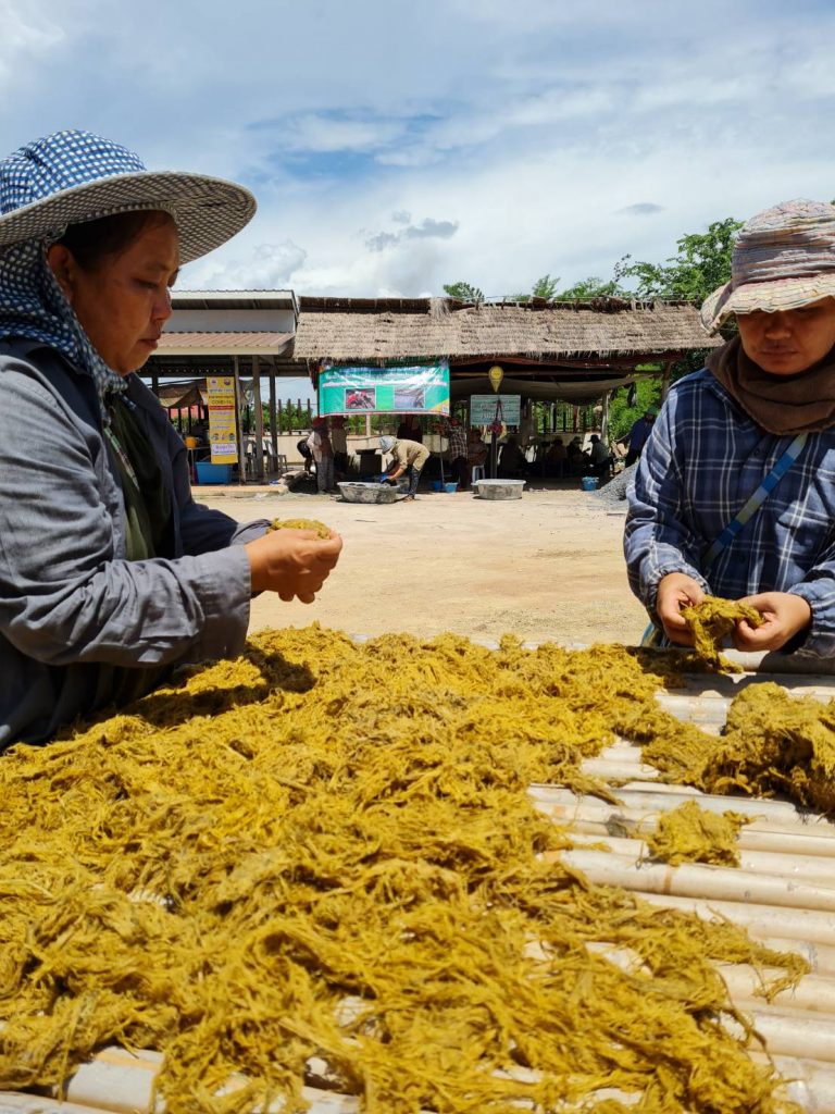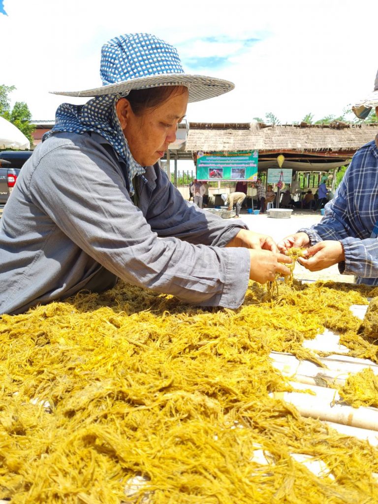 ปัจจุบันนักวิจัยได้นำกระบวนการแปรสภาพเส้นใยจากใบอ้อย ไปถ่ายทอดเทคโนโลยีการย้อมสีธรรมชาติเส้นใยจากใบอ้อย และการถ่ายทอดเทคโนโลยีการพัฒนาเป็นผลิตภัณฑ์สิ่งทอในรูปแบบใหม่ที่คงเอกลักษณ์โดยใช้ทรัพยากรที่มีในท้องถิ่น ในหมู่บ้านที่มีการทอผ้าและการปลูกอ้อยอยู่แล้วในหลายพื้นที่และมีความพร้อมที่จะเรียนรู้นวัตกรรมใหม่ ได้แก่กลุ่มทอผ้า ตำบลเขาสามสิบ อำเภอเขาฉกรรจ์ จังหวัดสระแก้ว จำนวน 4 หมู่บ้าน ดังนี้ หมู่ที่ 6 บ้านเนินตะแบก,หมู่ที่ 7 บ้านหนองโกวิทย์,หมู่ที่ 8 บ้านหนองคุ้ม และหมู่ที่ 12 บ้านสุขสำราญ