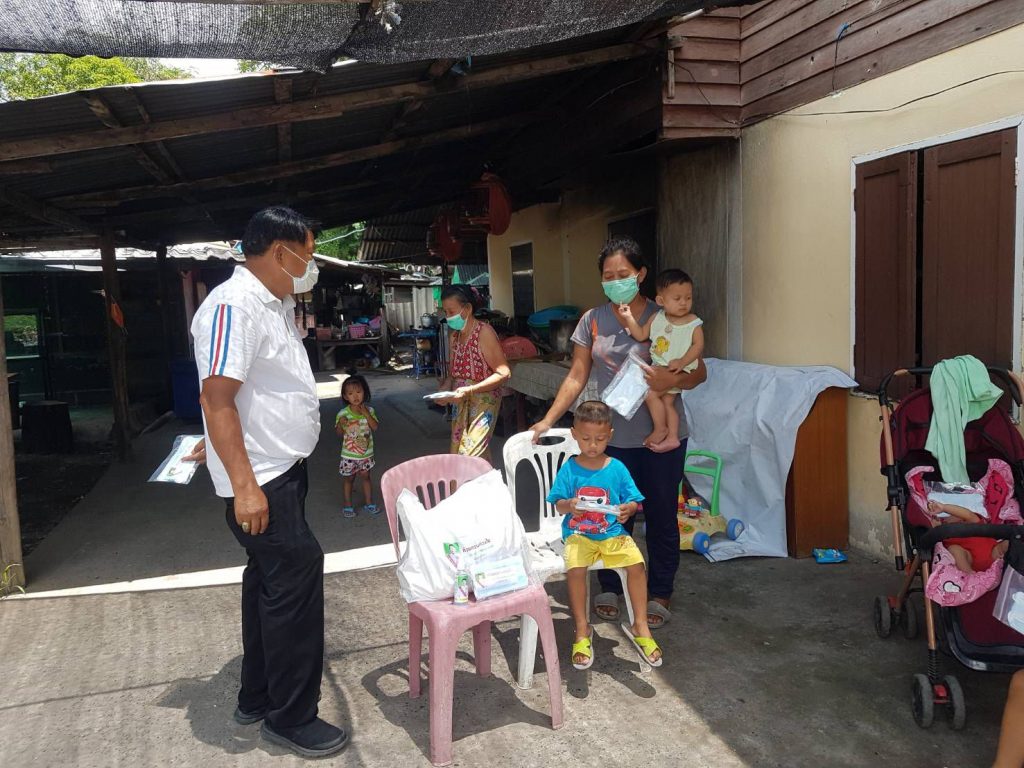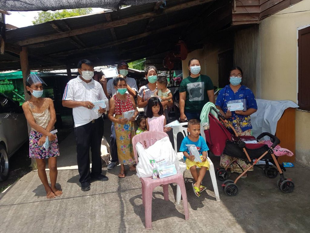 ผู้นำชุมชน หมู่ 9 ตำบลท่าแคได้ลงพื้นที่ ให้กำลังใจ และมอบ ถุงยังชีพ (เครื่องอุปโภค บริโภค) พร้อมด้วยหน้ากากอนามัย สเปรย์แอลกอฮอล ให้กับ ประชาชน