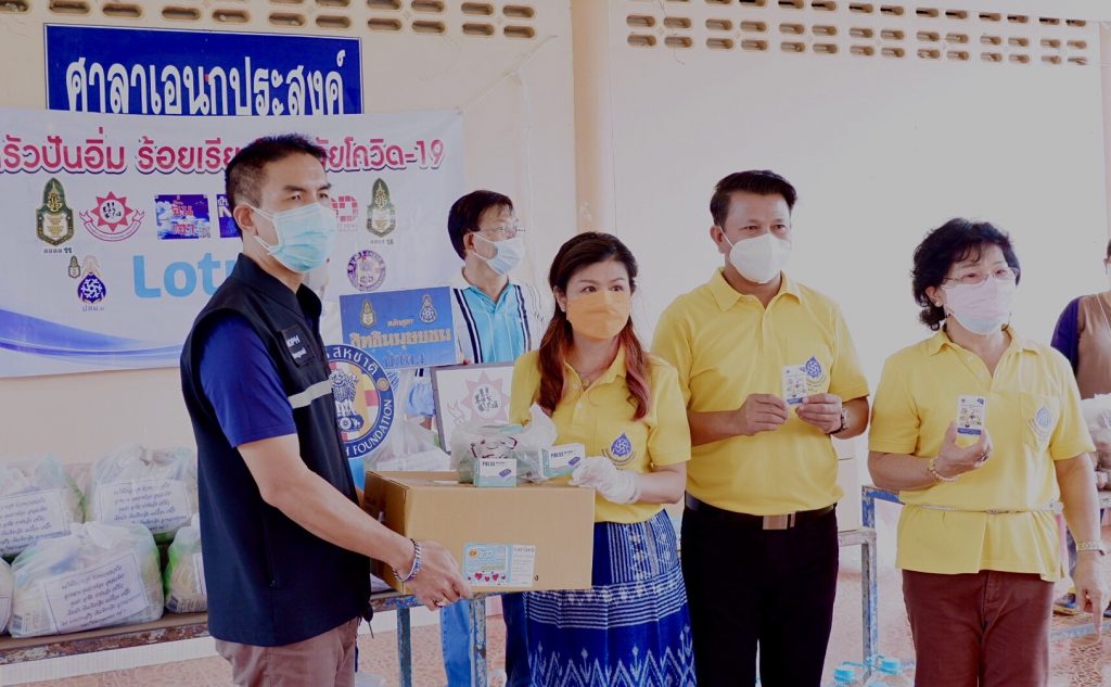 วันเดียวกัน ที่ศาลาประชาคม หมู่ 3 ต.แคตก อ.บางไทร จ.พระนครศรีอยุธยา นายสมชาย จรรยา อุปนายก สมาคมผู้สื่อข่าวและช่างภาพอาชญากรรมแห่งประเทศไทย พร้อมด้วยตัวแทนนักศึกษา หลักสูตรประกาศนียบัตรสิทธิมนุษยชนสำหรับนักบริหารระดับสูง รุ่น 1 (ปสม.) สถาบันพระปกเกล้า นำโดย นางถวิล เพิ่มเพียรสิน อดีตรองอธิบดีกรมพัฒนาฝีมือแรงงาน,นางสาวพรทิพย์ เตชะสมบูรณา กรรมการผู้จัดการ กลุ่มบริษัทในเครือ เวิลด์เมดิคอลซัพพลาย จำกัด,นายภูริวัจน์ ปุณยวุฒิปรีดา กรรมการผู้จัดการ บจก.เอสพีวี ปิโตรเลียม,นายประเสริฐ เพิ่มเพียรสิน และนางสุกัญญา จรรยา ผู้จัดการ มูลนิธิสหชาติ ร่วมส่งมอบข้าวกล่องพร้อมทาน “ครัวปันอิ่ม ร้อยเรียงใจ สู้ภัยโควิด-19” ของเครือซีพี พร้อมถุงยังชีพส่งความสุขและความห่วงใย อาทิ ข้าวสาร,ปลากระป๋อง,น้ำปลา,มาม่า,ไข่,น้ำดื่ม,หน้ากากผ้า,สเปร์ฉีดแอลกอฮอล์ และเครื่องตรวจวัดออกซิเจนปลายนิ้ว มอบแด่ชาวบ้านชุมชนหมู่ 3 ต.แคตก ซึ่งเป็นพื้นที่สีแดง ที่ได้รับผลกระทบจากวิกฤติโควิด โดยมีนายแพทย์ ศุภกร จิบสมานบุญ ผู้อำนวยการศูนย์โรงพยาบาลส่งเสริมสุขภาพตำบลแคตก พร้อมด้วยผู้ใหญ่บ้าน และชาวบ้านร่วมรับมอบ