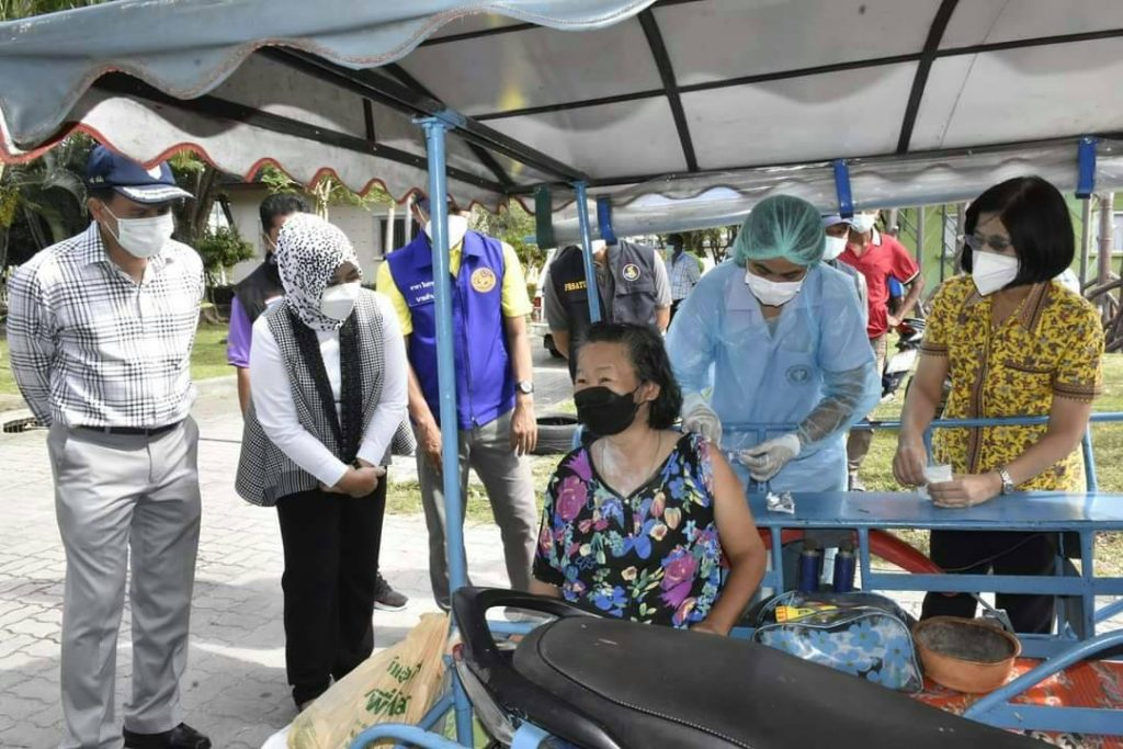 นายยาลา ใบกาเด็ม นายอำเภอเมืองสตูล กล่าวว่า พื้นที่ ตำบลตำมะลัง มี 3 หมู่บ้าน มีกลุ่มเป้าหมาย 608 ทั้งหมด 834 คน ฉีดวัคซีนแล้ว 197 คน ส่วนที่ตำบลปูยู มี 3 หมู่บ้าน มีกลุ่มเป้าหมาย 608 ทั้งหมด 467 คน ฉีดวัคซีนแล้ว 46 คน สำหรับการลงพื้นที่ฉีดวัคซีนให้กับกลุ่มเป้าหมาย 608 วันนี้ มีผู้ลงทะเบียนมาแล้ว 80 คน และกลุ่มเป้าหมาย walk in เข้ามาเพิ่ม 10 คน ก็จะได้รับการฉีดวัคซีนเช่นกัน เนื่องจากวันนี้ทีมแพทย์ได้เตรียมวัคซีนมาสำหรับฉีดกลุ่มเป้าหมาย 608 ซึ่งวันนี้มีผู้เข้ารับบริการฉีดวัคซีนจากตำบลตำมะลัง ตำบลปูยู และลงไปให้บริการเชิงรุกในกลุ่มผู้ป่วยติดเตียงที่บ้าน จำนวน 95 คน ซึ่งทั้งหมดนี้ มีคนพิการ และผู้ป่วยติดเตียง อยู่ด้วย 5 คน
