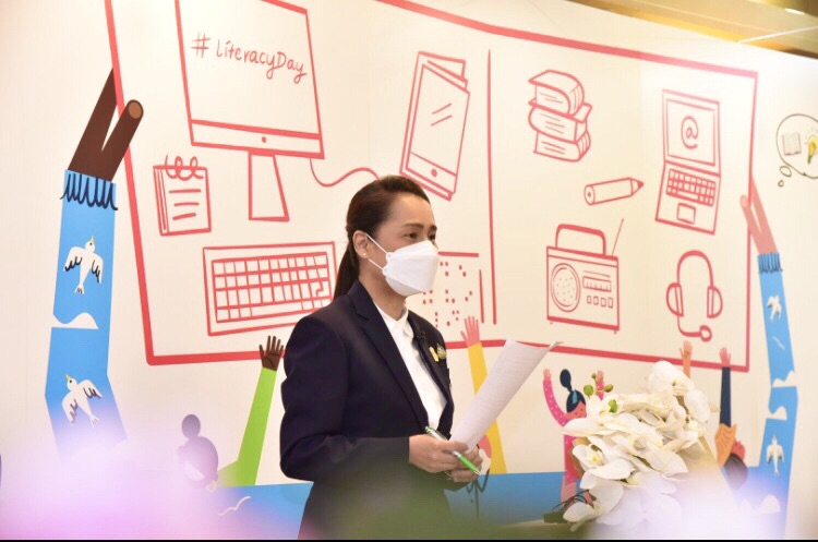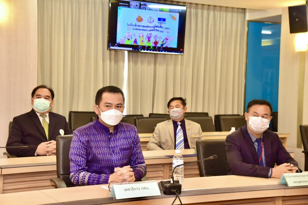 เมื่อวันที่ 8 กันยายน 2564 : นางกนกวรรณ วิลาวัลย์ รัฐมนตรีช่วยว่าการกระทรวงศึกษาธิการ เป็นประธานเปิดงานเฉลิมฉลอง “วันที่ระลึกสากลแห่งการรู้หนังสือ” ประจำปี 2564 (International Literacy Day 2021) ภายใต้กรอบแนวคิด “การรู้หนังสือเพื่อการฟื้นคืนสู่การใช้มนุษย์เป็นศูนย์กลาง : การลดช่องว่างทางดิจิทัล” ผ่านรูปแบบออนไลน์ Zoom Cloud Meeting พร้อมด้วย นายกมล รอดคล้าย ที่ปรึกษ รมช.ศึกษาธิการ,นายสุภัทร จำปาทอง ปลัดกระทรวงศึกษาธิการ,นายกวินทร์เกียรติ นนท์พละ รองเลขาธิการ กพฐ.,นายวรัท พฤกษาทวีกุล เลขาธิการ (กศน.) ตลอดจนผู้บริหารองค์กรหลัก เข้าร่วม ณ ห้องประชุมชั้น 6 สำนักงาน (กศน.)