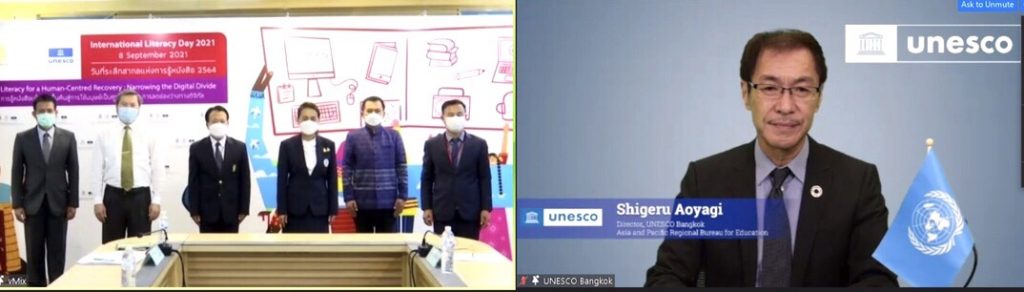 ซึ่งจะเป็นการผนวกรวมของความรู้และศักยภาพที่เหนือกว่าการรู้หนังสือขั้นพื้นฐาน ซึ่งจะช่วยให้เขาเหล่านั้นสามารถเรียนรู้ได้ตลอดชีวิต และมีส่วนร่วมในสังคมได้เต็มศักยภาพ เพื่อตอบสนองความต้องการดังกล่าว สำนักงานยูเนสโก กรุงเทพฯ ยังคงมุ่งมั่นที่จะทำงานอย่างใกล้ชิดกับกระทรวงศึกษาธิการของประเทศไทย ตลอดจนผู้มีส่วนได้ส่วนเสียในการเรียนรู้ตลอดชีวิต เพื่อความก้าวหน้าในการรู้หนังสือของกลุ่มเยาวชนและผู้ใหญ่ที่ไม่รู้หนังสือดังกล่าว และเพื่อลดช่องว่างด้านดิจิทัลในช่วงเวลาแห่งการแพร่ระบาดของโรคโควิด-19 โดยยูเนสโกกำลังดำเนินโครงการ “Accelerating Thailand” นำโดย Microsoft ประเทศไทย,สำนักงาน (กศน.) และภาคีเครือข่ายที่เกี่ยวข้อง เพื่อมุ่งสร้างทักษะด้านดิจิทัลให้แก่กลุ่มเยาวชนและผู้ใหญ่ดังกล่าว