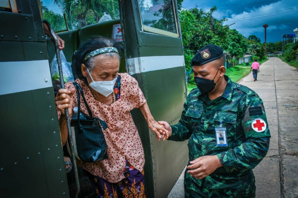 __วันที่ 9 กันยายน 2564 ที่กองพันทหารราบที่ 3 กรมทหารราบที่ 3 ค่ายพระยอดเมืองขวาง อำเภอเมือง จังหวัดนครพนม ได้รับการประสานจากโรงพยาบาลส่งเสริมสุขภาพตำบลบ้านชะโนต ตำบลขามเฒ่า อำเภอเมือง ในการจัดยานพาหนะ พร้อมเจ้าหน้าที่ ในการรับ-ส่ง กลุ่มผู้สูงอายุ เข้ารับการฉีดวัคซีน ป้องกัน Covid -19 เนื่องจากมีกลุ่มผู้สูงอายุที่ยังไม่ได้รับการฉีดวัคซีนในพื้นที่ หลังจากได้รับการประสานขอความช่วยเหลือ ทางด้านพันโท ศรณณัฐ นวลมณี ผู้บังคับกองพันทหารราบที่ 3 กรมทหารราบที่ 3 (ผบ.ร.3 พัน.3) จึงมีความห่วงใยจากสถานการณ์แพร่ระบาดโควิด -19 ในปัจจุบันถือว่าเป็นวิกฤตสำคัญ จึงได้ร่วมอำนวยความสะดวกในการจัดยานพาหนะ พร้อมเจ้าหน้าที่ ในการรับ-ส่ง กลุ่มผู้สูงอายุ จำนวน 40 คน เพื่อเข้ารับการฉีดวัคซีนป้องกัน Covid -19 โดยเป็นการอำนวยความสะดวก และ รณรงค์ ให้ประชาชนได้รับวัคซีนอย่างทั่วถึง จุดรับจากโรงพยาบาลส่งเสริมสุขภาพตำบลบ้านชะโนต ตำบลขามเฒ่า อำเภอเมือง มายังอาคารยงใจยุทธ ศาลากลางจังหวัดนครพนม ในการจัดยานพาหนะในการรับ-ส่ง กลุ่มผู้สูงอายุในครั้งนี้หน่วยยังมอบน้ำใจให้หลังจากผู้สูงอายุฉีดวัคซีนเป็นซาลาเปาน้ำดื่ม แทนความห่วงใยจากกองทัพบกในการดูแลประชาชนในช่วง Covid -19 ทำให้กลุ่มผู้สูงอายุต่างประทับใจพร้อมทั้งยกมือไหว้ให้พรแทนคำขอบคุณที่เจ้าหน้าที่หน่วย ร.3 พัน.3ให้บริการอย่างประทับใจ ต่างชื่นชมและยกมือไหว้ก่อนลงจากรถรับส่งที่บริการจนถึงหน้าบ้านอย่างปลอดภัย