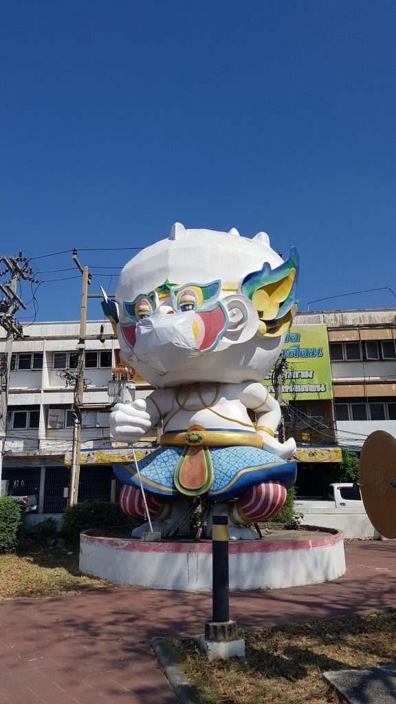 หนุมาน หรือลิงยักษ์ ที่ตั้งเป็นสัญญาลักษณกลางเมืองลพบุรี เพื่อเป็นแรงจูงใจว่าชาวลพบุรีกาดอย่าตก