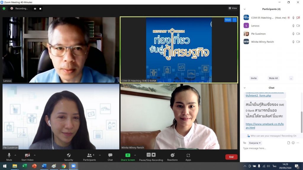 วันที่ 8-9 กันยายน 2564 ที่ผ่านมา กระทรวงการท่องเที่ยวและกีฬา ร่วมกับหน่วยงานพันธมิตร ธนาคารออมสิน และ ธนาคารพัฒนาวิสาหกิจขนาดกลางและขนาดย่อม ร่วมมือกัน จัดกิจกรรม “ท่องเที่ยวจับคู่ กู้เศรษฐกิจ Restart Tourism” ในรูปแบบเสมือนจริง (Virtual Online Event) พร้อมช่วยสนับสนุนผู้ประกอบการในอุตสาหกรรมท่องเที่ยวทั้ง 13 สาขาวิชาชีพ ที่ประสบผลกระทบจากวิกฤตการระบาดของโควิด-19 โดยจัดกิจกรรมสัมมนา ผ่านช่องทาง Zoom Conference และ Facebook Live ของกระทรวงการท่องเที่ยวและกีฬา มีผู้สนใจเข้าร่วมกว่า 300 ราย รวมไปถึงกิจกรรมเจรจาธุรกิจ (Online Business Matching) กับธนาคารออมสิน และธนาคารพัฒนาวิสาหกิจขนาดกลางและขนาดย่อมแห่งประเทศไทย ที่ให้คำปรึกษาแบบตัวต่อตัวและสนับสนุนด้านเงินทุนแก่ผู้ประกอบการกว่า 100 ราย ภายใต้วงเงินกู้ของธนาคารแห่งประเทศไทย 250,000 ล้านบาท