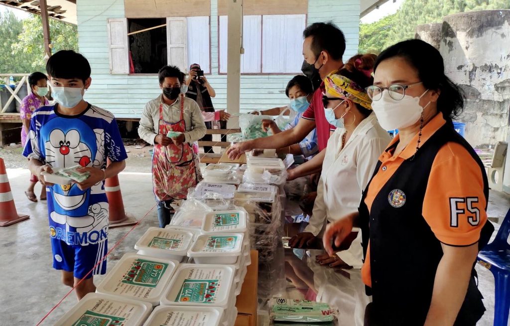 เกาะติดภารกิจครัวปันอิ่ม วันที่ 12 กันยายน 2564 ที่ศาลาเอนกประสงค์ โรงเรียนบ้านห้วยชุมพร หมู่ 9 ต.คลองกิ่ว อ.บ้านบึง จ.ชลบุรี นายชูศักดิ์ พรนิมิตรทรัพย์,นายสมชาย เฉลิมโชค ผู้ช่วยผู้ใหญ่บ้านหมู่ 9 พร้อมคณะกรรมการหมู่บ้าน (อสม.) และชาวบ้าน ร่วมรับมอบข้าวกล่องอุ่นร้อนพร้อมรับประทานโครงการ “ครัวปันอิ่ม ร้อยเรียงใจสู้ภัยโควิด-19” และสิ่งของเครื่องใช้ อาทิ ยาสมุนไพรฟ้าทะลายโจร,เครื่องตรวจวัดออกซิเจนปลายนิ้ว,สเปรย์ฉีดแอลกอฮอล์,หน้ากากอนามัย และน้ำดื่ม จากนายสมชาย จรรยา อุปนายก สมาคมผู้สื่อข่าวและช่างภาพอาชญากรรมแห่งประเทศไทย ร่วมกับพันธมิตรจิตอาสา นำโดย มูลนิธิสหชาติ,กรมคุ้มครองสิทธิเสรีภาพ กระทรวงยุติธรรม,บริษัท เคโมดะ ประเทศไทย จำกัด,นักศึกษาหลักสูตร สิทธิมนุษยชน (ปสม.)รุ่น 1 และหลักสูตร เสริมสร้างสังคมสันติสุข (สสสส.) รุ่นที่ 12 สถาบันพระปกเกล้า เพื่อช่วยแบ่งเบาภาระ และบรรเทาความเดือดร้อนในช่วงสถานการณ์โควิด-19