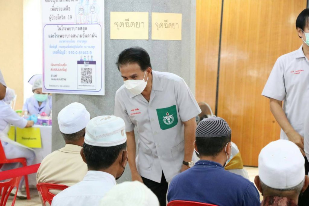 ที่ศูนย์ฉีดวัคซีน อาคาร 100 ปี สธ. โรงพยาบาลสตูล นายเอกรัฐ หลีเส็น ผู้ว่าราชการจังหวัดสตูล เป็นประธานในพิธีเปิดและตรวจเยี่ยมการฉีดวัคซีนพระราชทาน ซิโนฟาร์ม ของราชวิทยาลัยจุฬาภรณ์ และมูลนิธิแพทย์อาสาสมเด็จพระศรีนครินทราบรมราชชนนี (พอ.สว.) โดยมีผู้รับบริการเป็นกลุ่มผู้นำศาสนาจากทั้ง 7 อำเภอ รวมทั้งสิ้น 1,166 ราย มารับบริการที่ศูนย์ฉีดวัคซีนโรงพยาบาลสตูล โดยมีอาสาสมัครหน่วยแพทย์เคลื่อนที่ พอ.สว. จังหวัดสตูล และเจ้าหน้าที่โรงพยาบาลสตูล ให้บริการฉีดวัคซีนตั้งแต่เวลา 08.30 น. จนถึง 16.00 น. สำหรับวัคซีนพระราชทาน ซิโนฟาร์ม เป็นวัคซีนทางเลือกที่ได้รับพระราชทานจาก จาก ศาตราจารย์ ดร.สมเด็จพระเจ้าน้องนางเธอ เจ้าฟ้าจุฬาภรณ์วลัยลักษณ์ อัครราชกุมารี กรมพระศรีสวางควัฒน์ วรขัตติยราชนารี โดยราชวิทยาลัยจุฬาภรณ์ ร่วมกับ มูลนิธิแพทย์อาสาสมเด็จพระศรีนครินทราบรมราชชนนี (พอ.สว.) ที่จะฉีดให้แก่ประชาชนกลุ่มเปราะบาง ที่ยังไม่ได้เคยรับวัคซีนป้องกันโรคโควิด-19 ชนิดใดมาก่อน