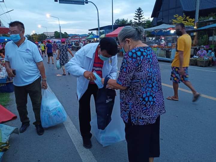 พร้อมกับนำหน้ากากอนามัยจำนวน หนึ่ง