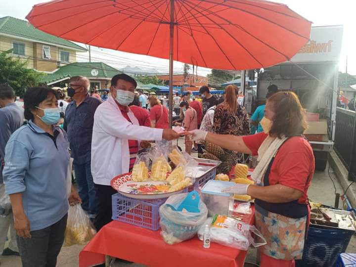 ไปแจกจ่ายให้กับพ่อค้าแม่ค้าในตลาดและประชาชนที่มาจับจ่ายเดินซื้อของในตลาด มีพ่อค้าแม่ค้าประชาชนสนใจเข้ามารุมล้อมรับแจกหน้ากากจากนายประทวนสุทธิอำนวยเดช เป็นจำนวนมาก และได้เดินแจกให้กับพ่อค้าแม่ค้าตามแผนต่างๆอีกด้วย โดยนายประทวนส.ส.ขวัญใจประชาชน ชาวลพบุรี ได้กล่าวปราศรัยผ่านรถขยายเสียงให้ประชาชนได้ตระหนักถึงการดูแลตนเองเพื่อป้องกันภัยจากไข้หวัดสายพันธุ์ใหม่โควิท19 ซึ่งมีแนวโน้มที่จะแพร่ระบาดขยายออกไปเป็นวงกว้าง