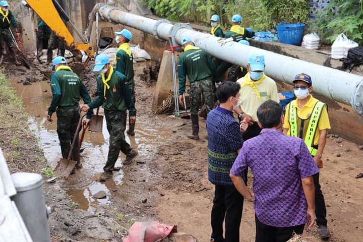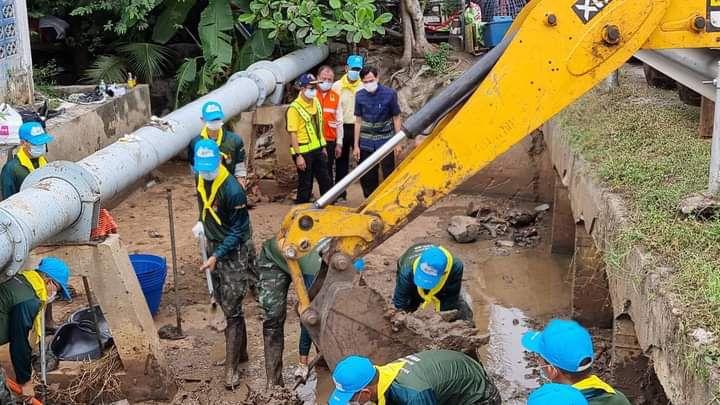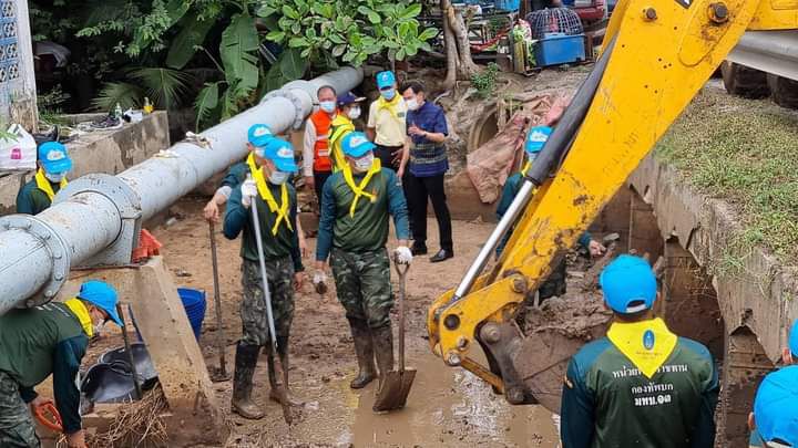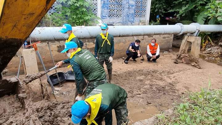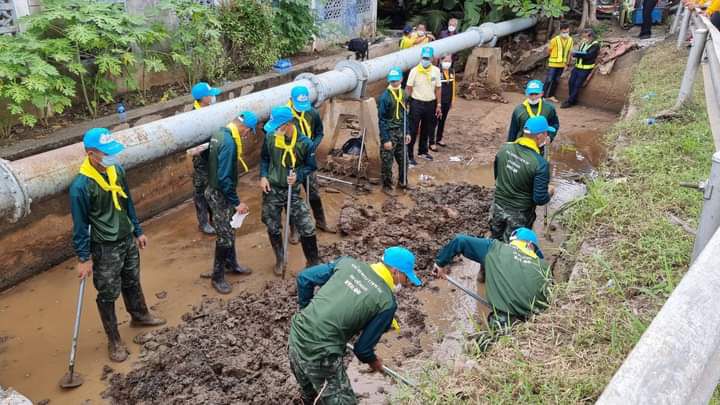 ผู้แทนมณฑลทหารบกที่ 13 ตลอดจนกำลังพลจิตอาสาพระราชทาน “เราทำความดีด้วยหัวใจ” จากศูนย์บรรเทาสาธารณภัย มณฑลทหารบกที่ 13 จำนวนกว่า 10 นาย ร่วมกับ เจ้าหน้าที่ฝ่ายป้องกันเทศบาลตำบลท่าศาลา เทศบาลตำบลกกโก ลงพื้นที่แก้ไขจุดเสี่ยงอุทกภัย บริเวณสามแยกนิคมสร้างตนเอง อ.เมืองลพบุรี โดยนำรถแบล็คโฮ จำนวน 2 คัน และรถบรรทุก 6 ล้อ จำนวน 1 คัน ของแขวงทางหลวงลพบุรีที่ 1 ร่วมกันขุดลอกตะกอนดินและเศษวัชพืช ในคลองระบายน้ำ และในท่อลอดระบายน้ำขนาด 1 เมตร 80 เซนติเมตร ด้านใต้ผิวการจราจร ถนนพหลโยธิน บริเวณสี่แยกนิคมสร้างตนเอง จนถึงหน้าสถานีน้ำมัน ปตท. เพื่อเปิดทางน้ำให้น้ำสามารถระบายได้คล่องตัวขึ้นในกรณีมีฝนตกหนัก เพื่อเตรียมความพร้อมรับฝนตกหนักและน้ำป่าไหลหลากจากพายุโซนร้อนโกนเซินต่อไป