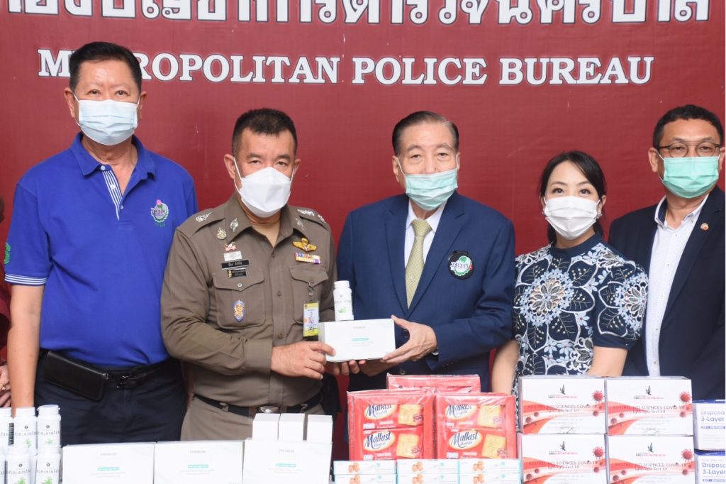 เมื่อวันที่ 14 ก.ย.64 เวลา 12.00 น. : พล.ต.ต.ปิยะ ต๊ะวิชัย รอง ผบช.น./โฆษก บช.น. รับมอบหน้ากากอนามัย,ข้าวสาร,ฟ้าทะลายโจร,เครื่องวัดอุณหภูมิร่างกายฯ จาก นายสมศักดิ์ ศรีสุภรวาณิชย์ ประธานกรรมการ ห้างหุ้นส่วนจำกัด สุรัตน์พัฒการทอ เเละคณะ ณ ลานอเนกประสงค์ บช.น.