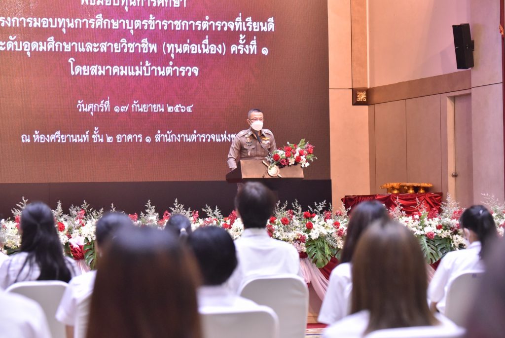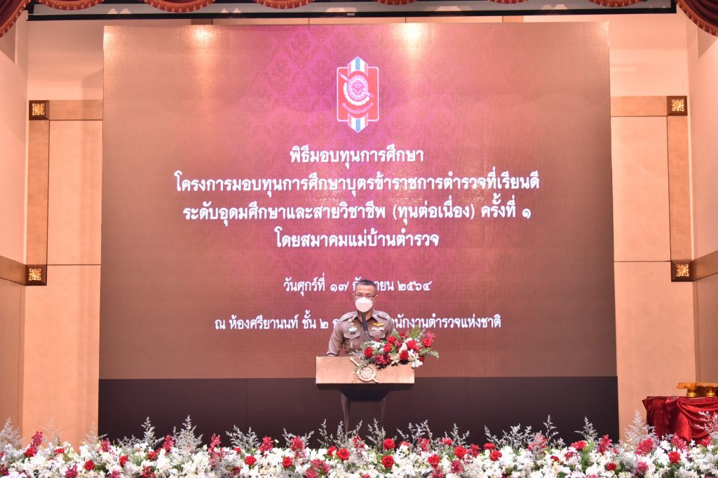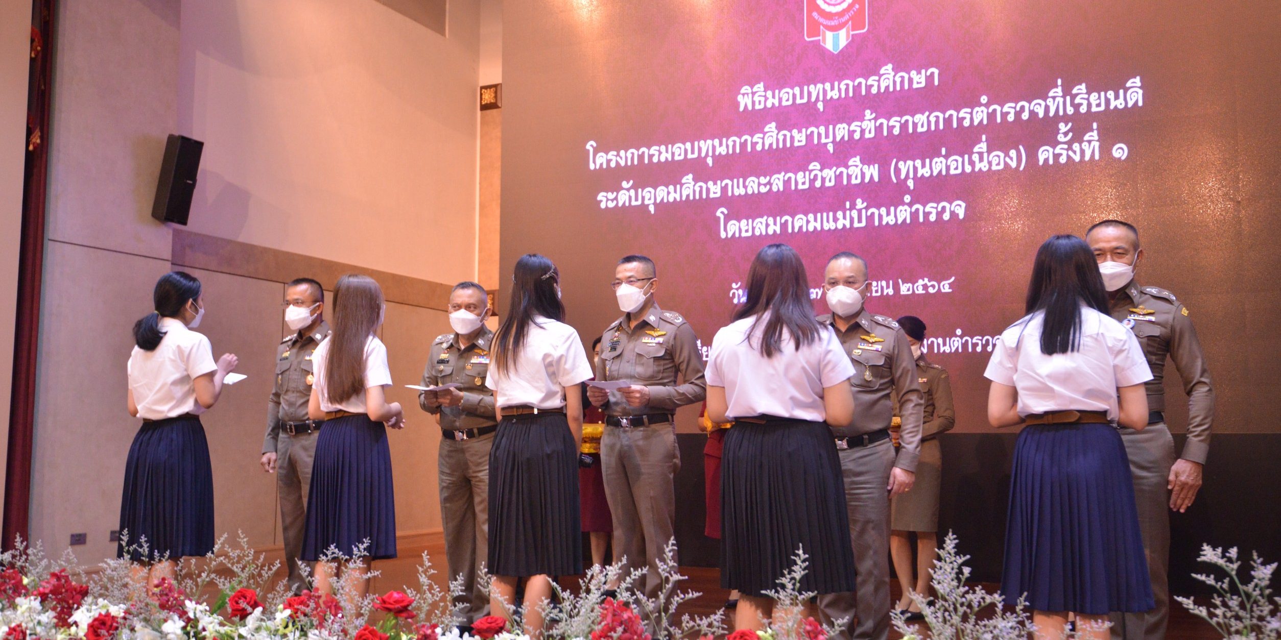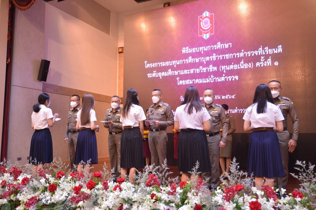สมาคมแม่บ้านตำรวจ กำหนดจัดพิธีมอบทุนการศึกษาโครงการมอบทุนการศึกษาบุตรข้าราชการตำรวจที่เรียนดี ระดับอุดมศึกษาและสายวิชาชีพ (ทุนต่อเนื่อง) ครั้งที่ 1 ประจำปี 2564 เพื่อสนับสนุน และดูแลสวัสดิการแก่ครอบครัวของข้าราชการตำรวจ ตามนโยบายของ พล.ต.อ.สุวัฒน์ แจ้งยอดสุข ผู้บัญชาการตำรวจแห่งชาติ