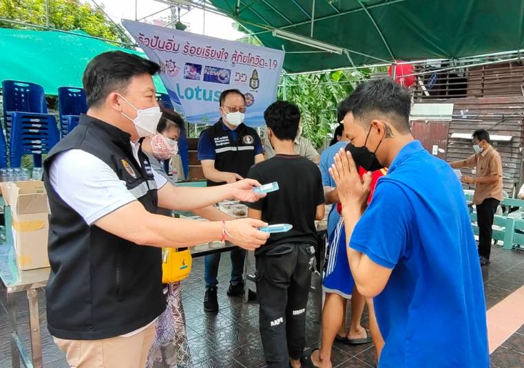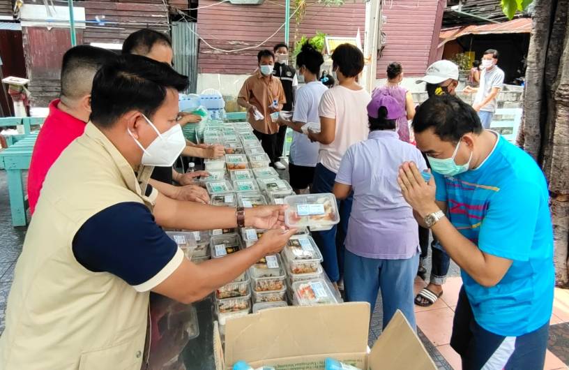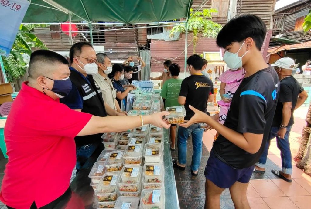 ร่วมมอบข้าวกล่องพร้อมทานจากโครงการ “ครัวปันอิ่ม ร้อยเรียงใจ สู้ภัยโควิด” ของเครือบริษัท ซีพี พร้อมหน้ากากอนามัย นำเสริมภูมิร่างกายต้านโควิด และเจลแอลกอฮอล์ มอบให้กับชาวชุมชน โดยมี นายพศวัต สุมาสา ประธานชุมชน และชาวบ้าน รับมอบเพื่อนำไปรับประทาน ส่วนผู้ป่วยติดเตียง และผู้ที่ต้องกักตัวอยู่ภายในบ้าน ทางคณะกรรมการ จะนำไปมอบให้ในภายหลัง